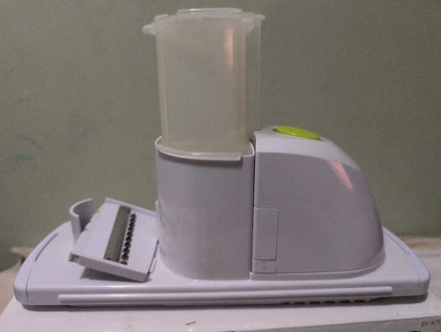 This is a used One-Touch automatic vegetable slicer. It's an ultra-safe automatic mandolin style to dice, julienne, slice, wedge, shred vegetables, and prepare garnishes. It has some wear and tear. If the ad is still up, then it's still available!