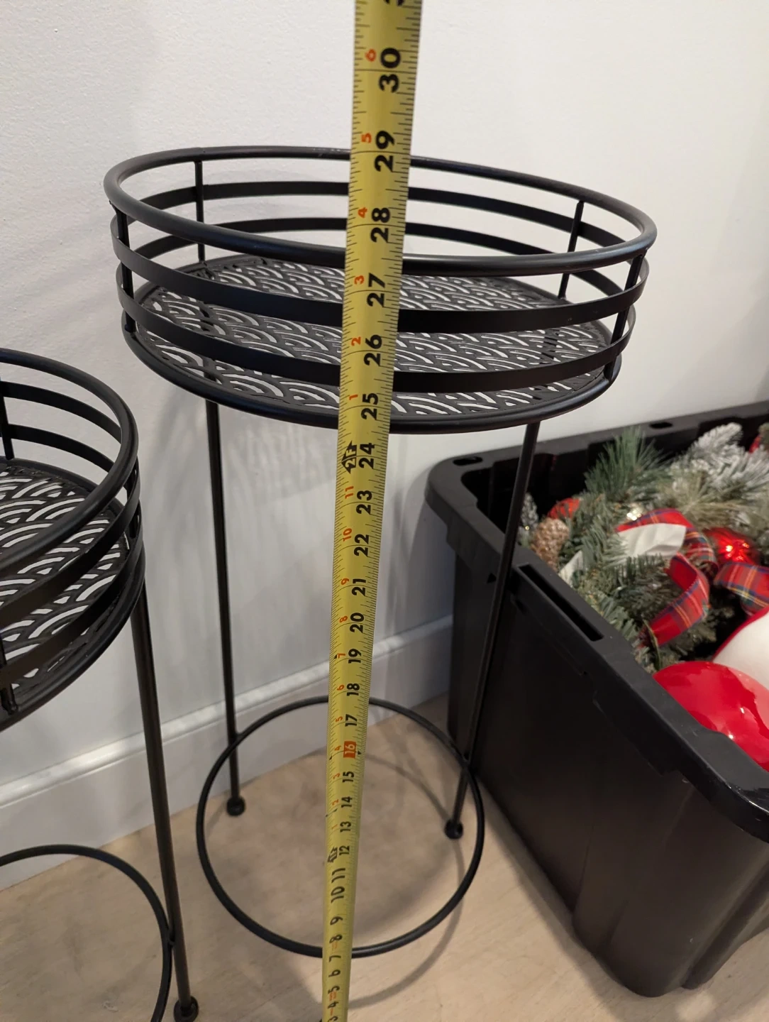 Selling a set of two plant stands! They're in great shape and ready to display your favourite plants. The stands are black metal with a circular base and a platform to hold pots. Perfect for adding a touch of greenery to your home! Plants and pots not included.