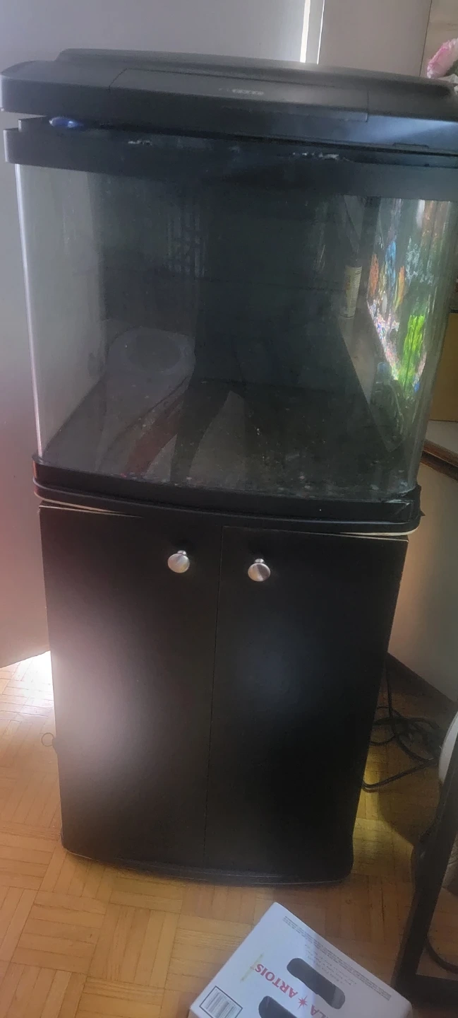 Selling a fish tank with a stand. It's black and in good condition. Perfect for setting up a new aquarium or upgrading your current one