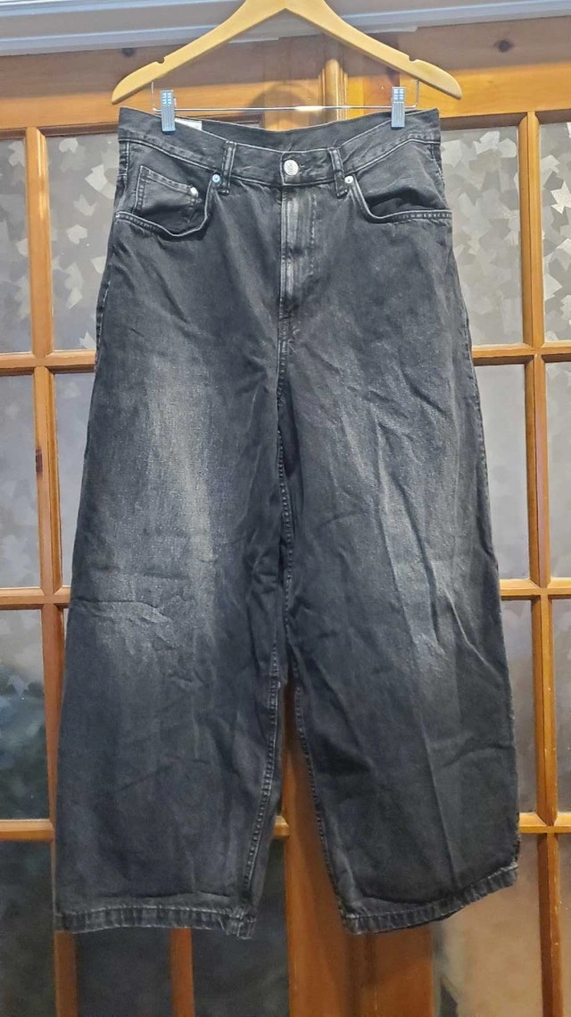 These H&M super baggy washed black jeans fit in a size 32/30 but feels like 35. These jeans are in used condition. Here are some measurements: