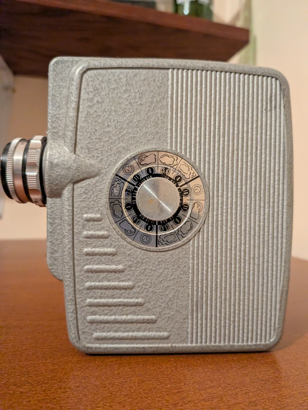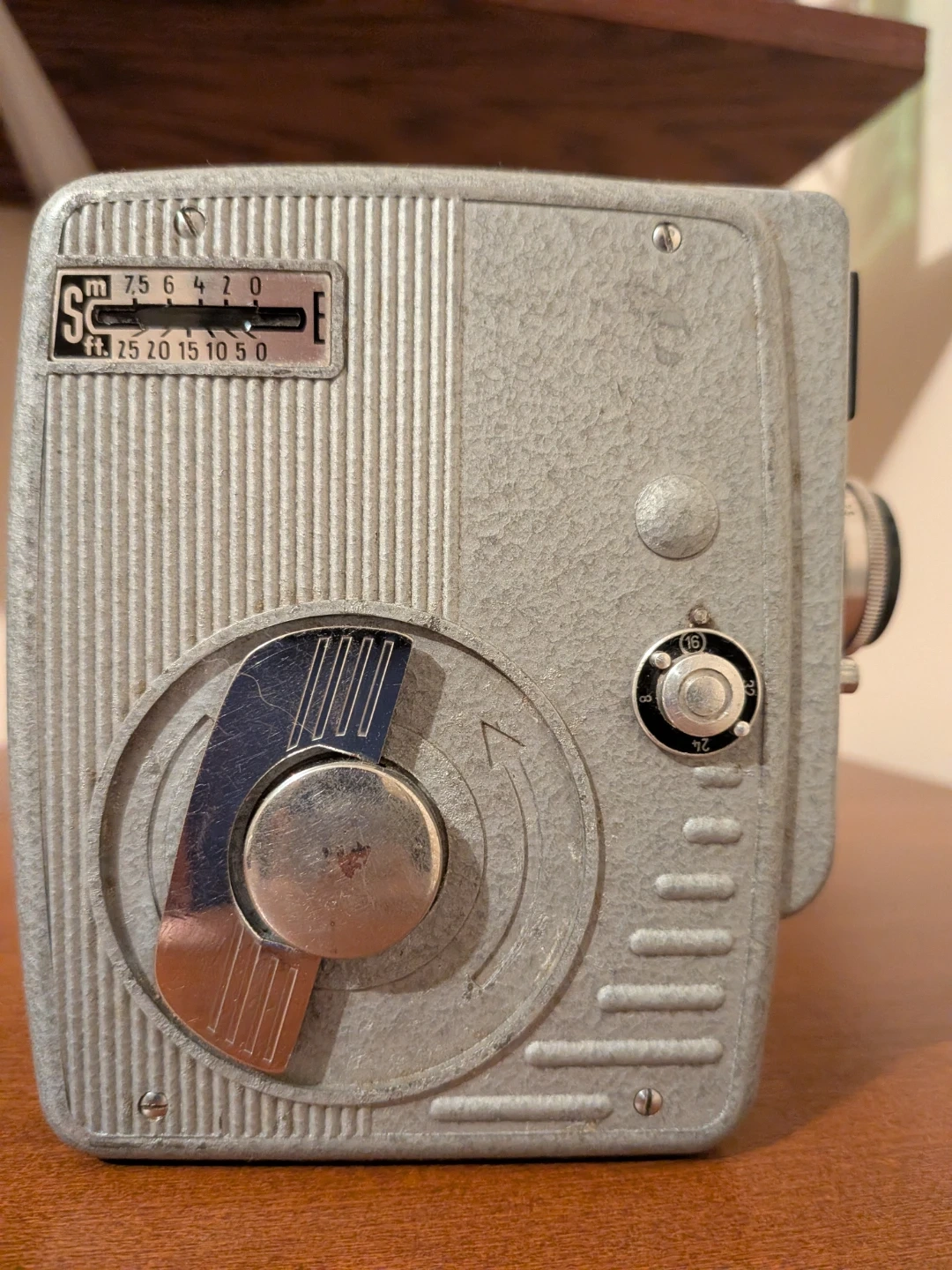 Type: It is a Double-8 film (Standard 8mm) cine camera. It uses a spring motor for power.