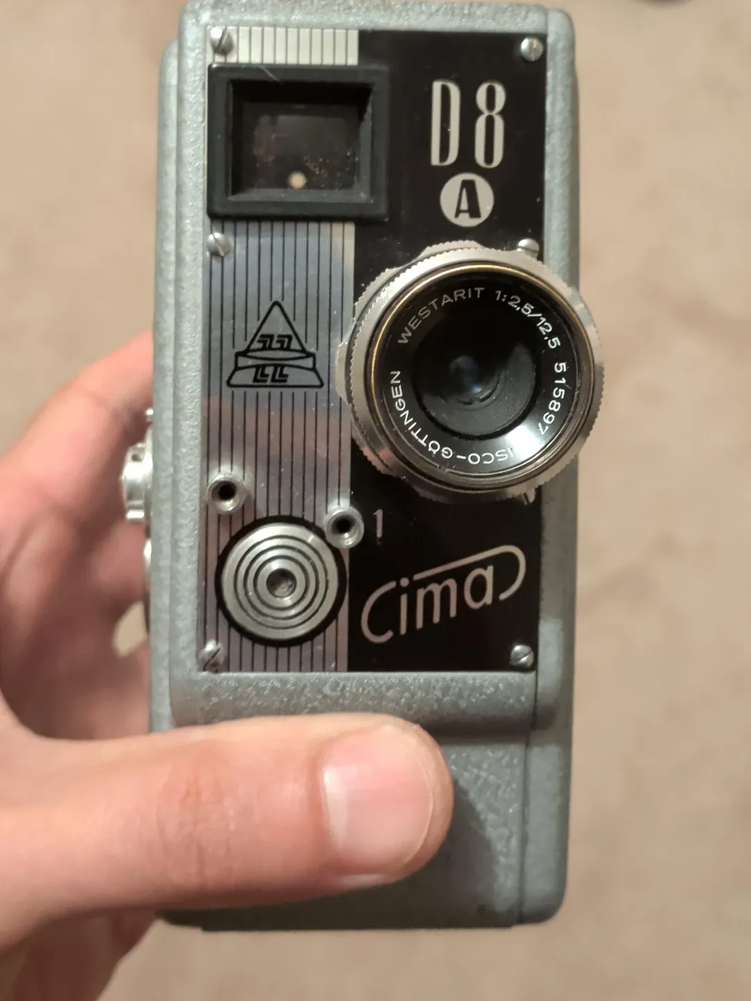 Manufacturer: The camera was produced under the Cima brand. This particular model, the Cima D8 (and D8 A), is often identified as a West German film camera.