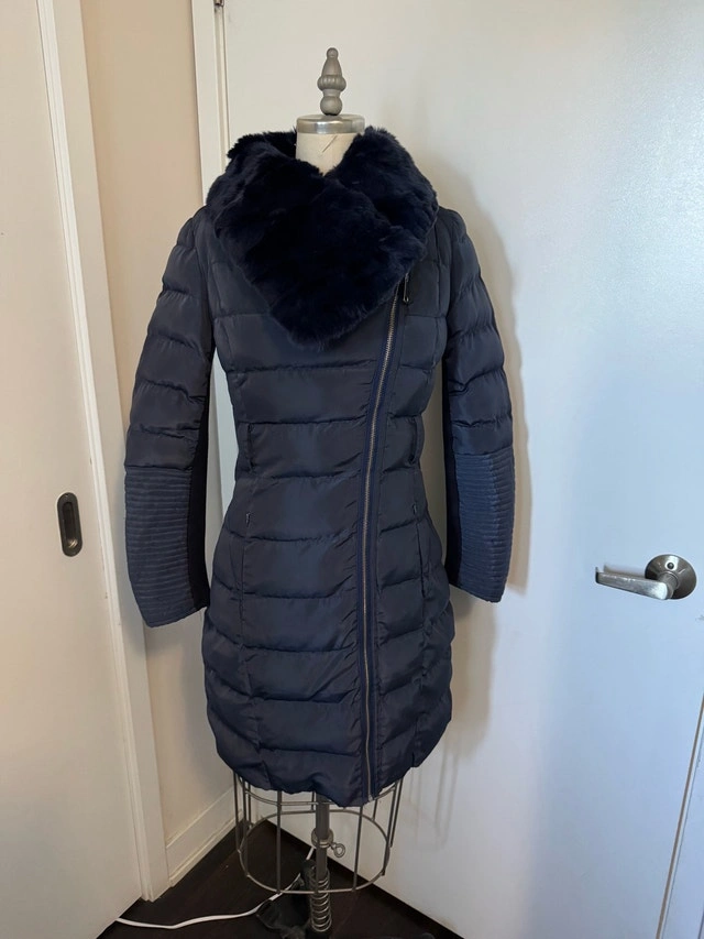 Beautiful Ladies Size Small Winter Jacket - Like New Now asking $20 worn 3-4 times like new, Navy Blue.