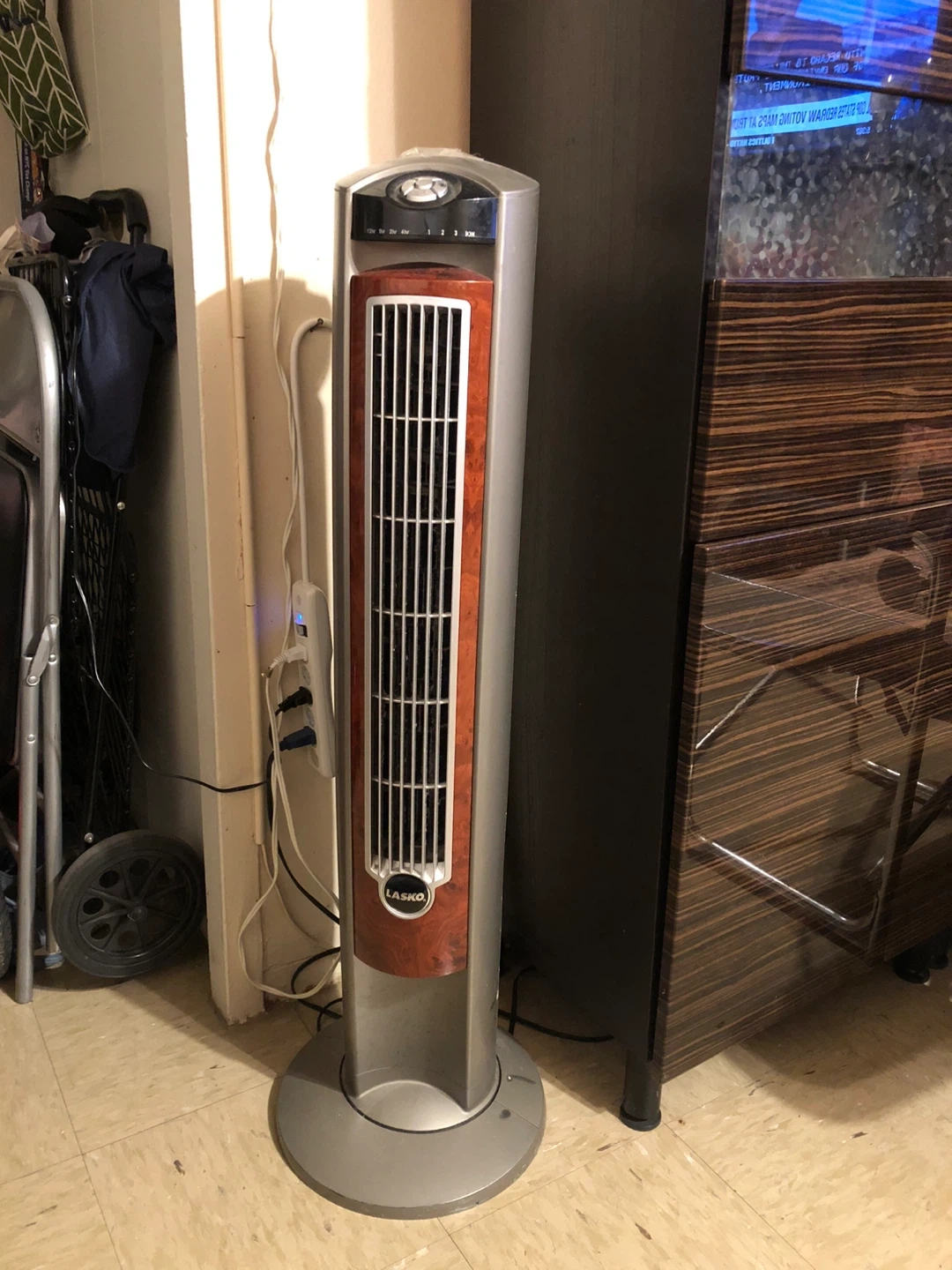 Selling a Lasko tower fan. It's about 42 inches tall and in good condition. Perfect for cooling down a room!