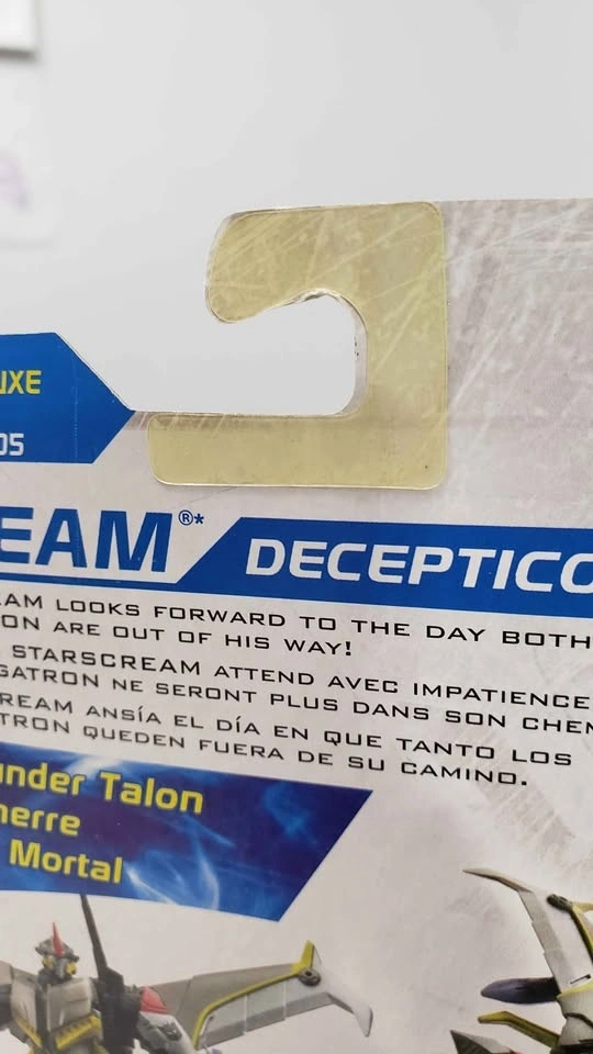Everything seems to be perfect with a few nicks/blemishes around the bottom box. Card and bubble are in great shape. The plastic hook tab on the back has yellowed (see pictures). I also have Smokescreen and Bumblebee for sale. Please see my other listings.