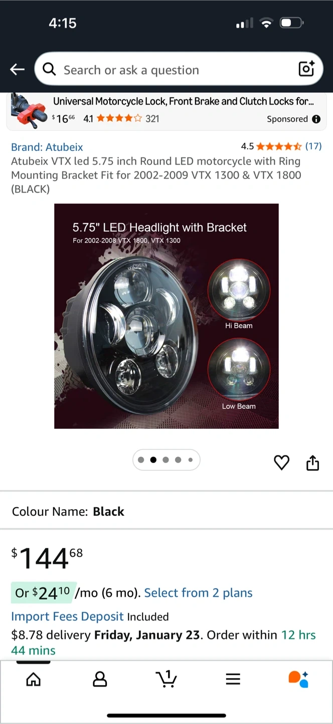 Selling a 5.75 inch LED Headlight with Bracket for 2002-2008 VTX 1800 and VTX 1300 motorcycles