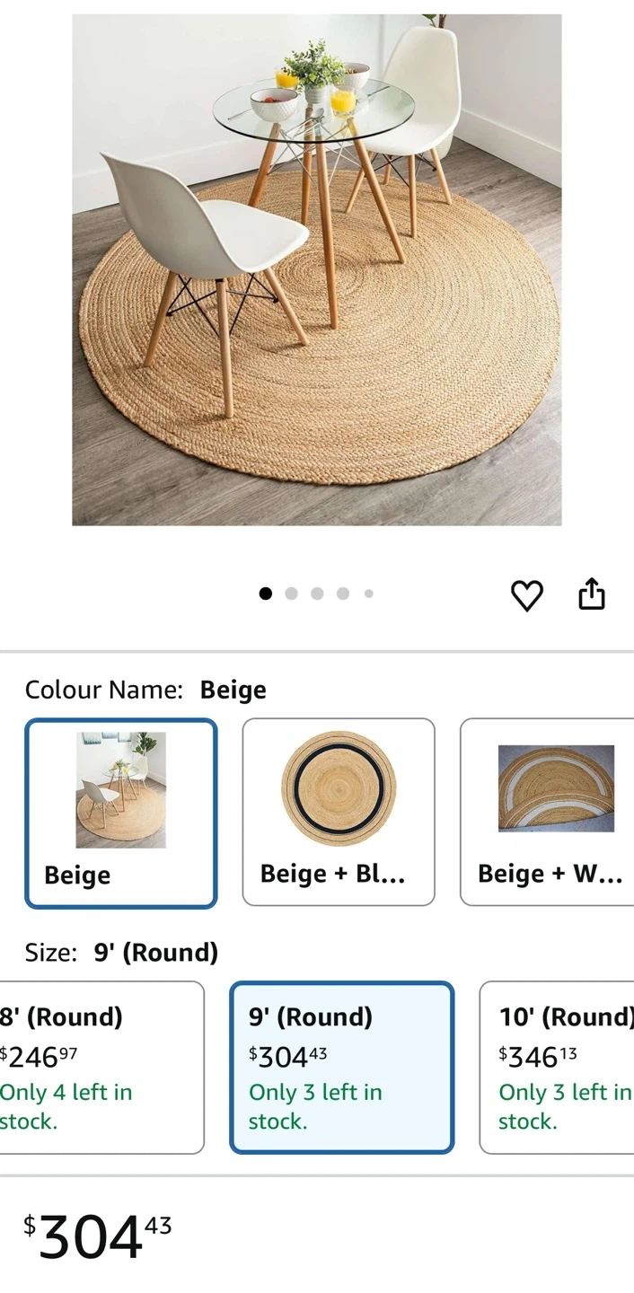 Buy & SellRound Beige Jute RugRound Beige Jute Rug$55Selling a lovely round jute rug in beige! It's in great shape and would look fantastic in any room. Originally bought for $304.43ConditionNewWHERE TO MEETCheck LocationView MapSELLERverifiedAshWishing Well Acres30224 reviews2 chats·6 favorites·104 viewsSEND CHAT TO SELLERHi Ash! I’m interested in your listing.Hi Ash! I’m interested in your listing.Get the Karrot app to chatSign In to chat
