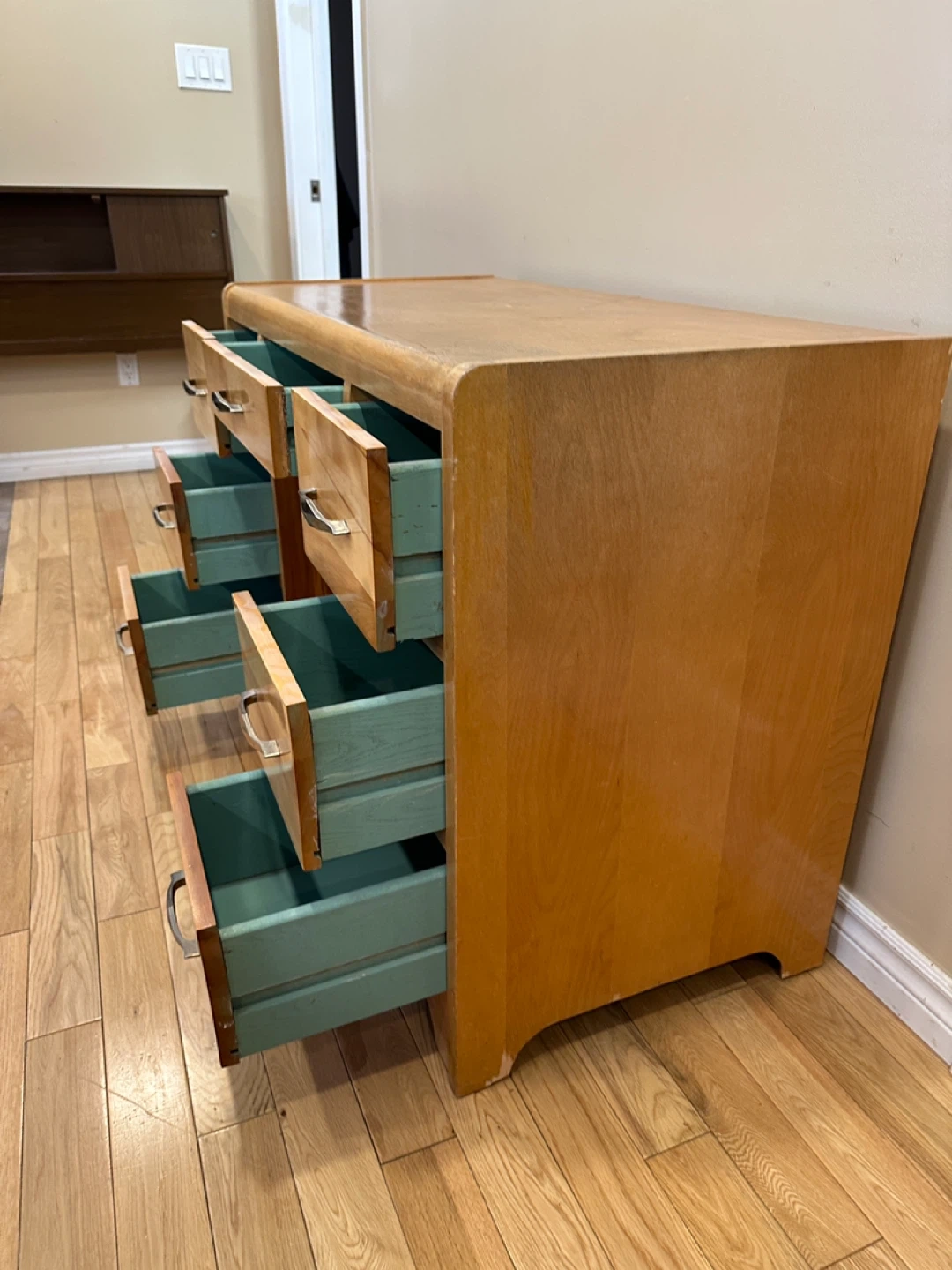 • Drawer interiors painted a stylish turquoise for a unique touch