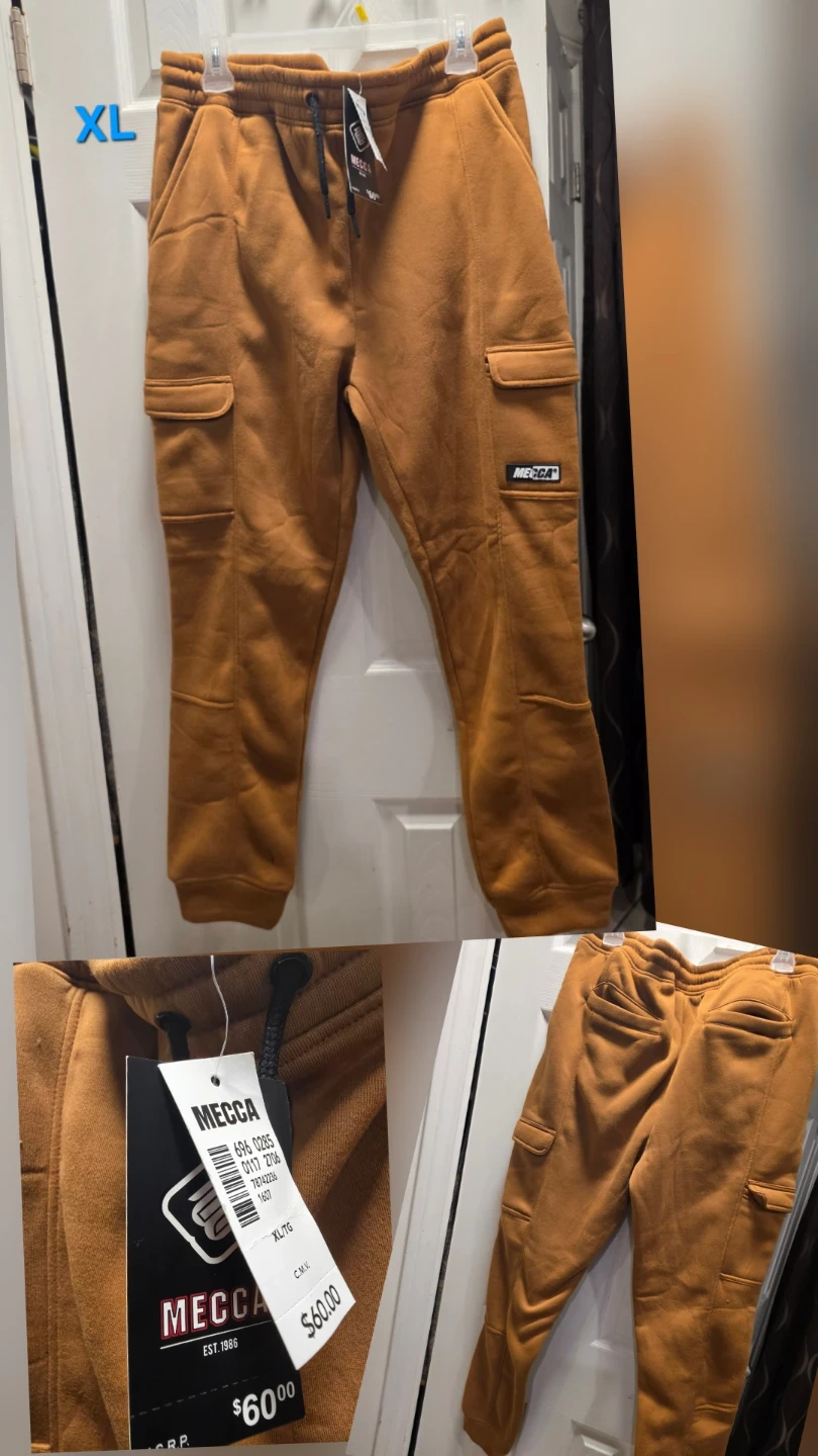 This MECCA cargo sweatpants is brand new with tags! It is a size XL and feature a comfortable fit with functional cargo pockets. The original price tag shows $60.00. Perfect for lounging or running errands!