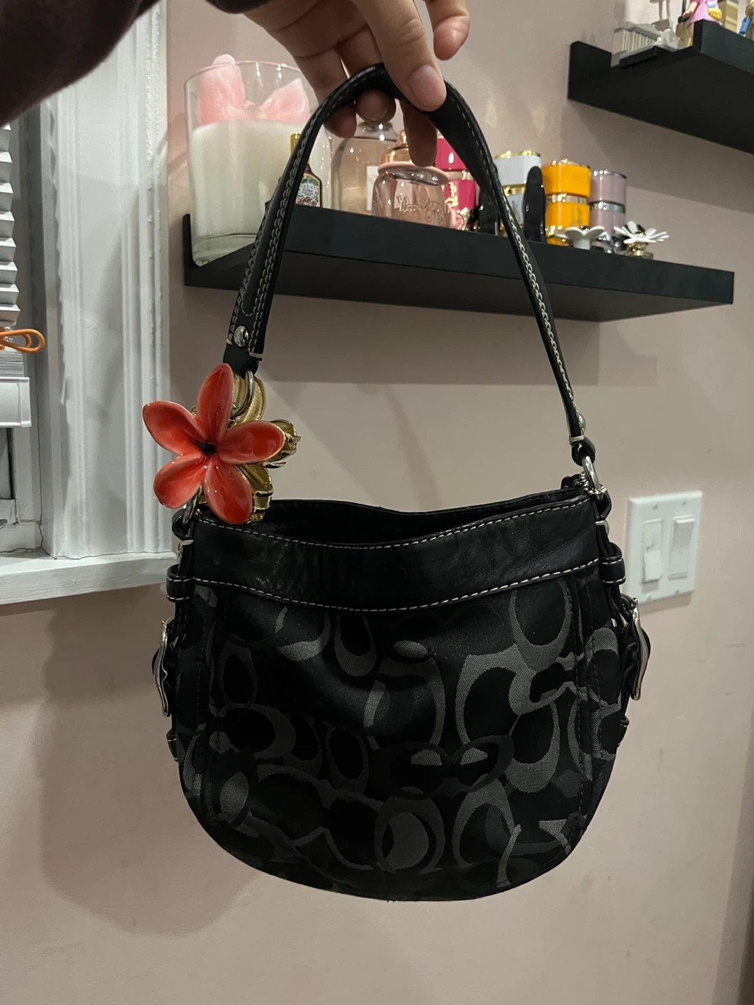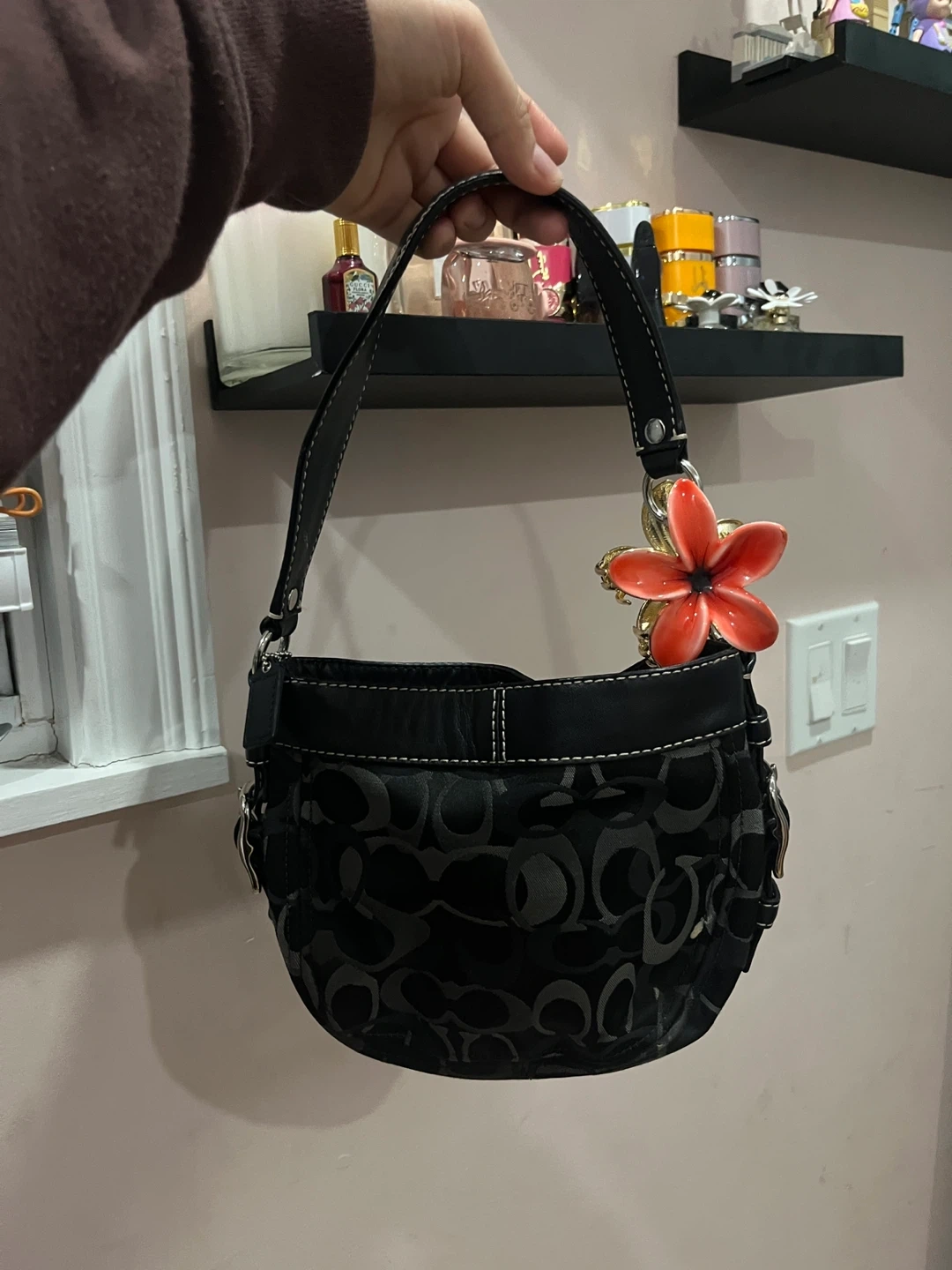 Selling a cute Coach hobo bag in black! It has a fun flower charm attached, adding a pop of color to the classic design