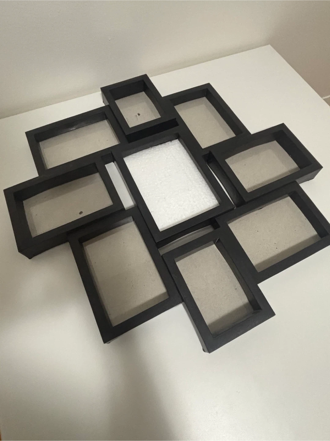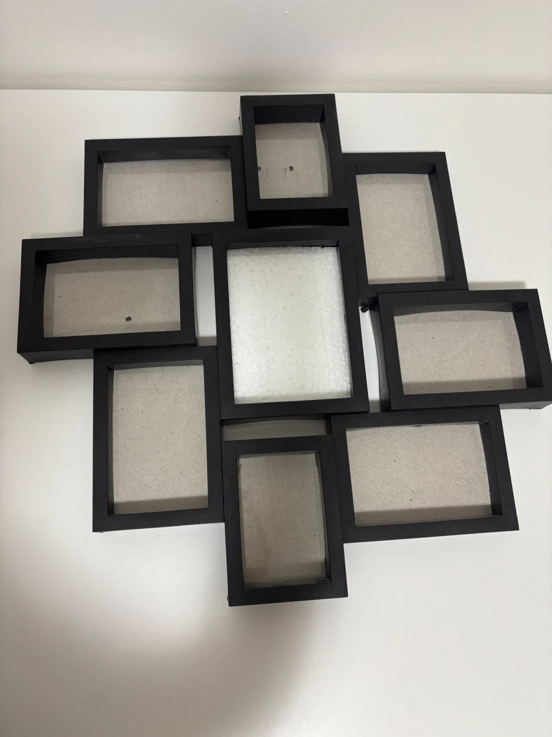 Selling a multi-picture frame in black! It's perfect for displaying several photos at once. It's in great condition and ready to add some personal flair to your space