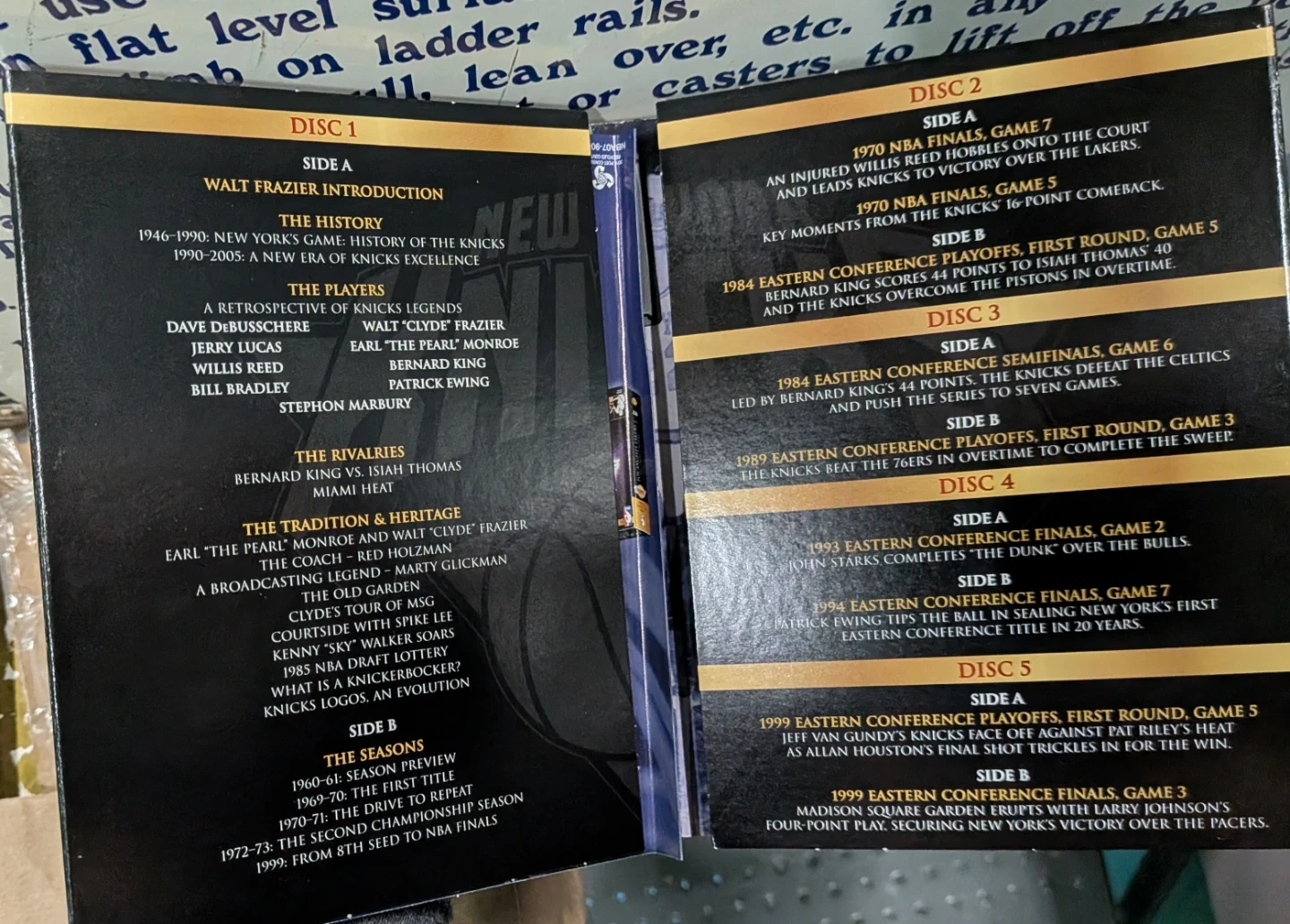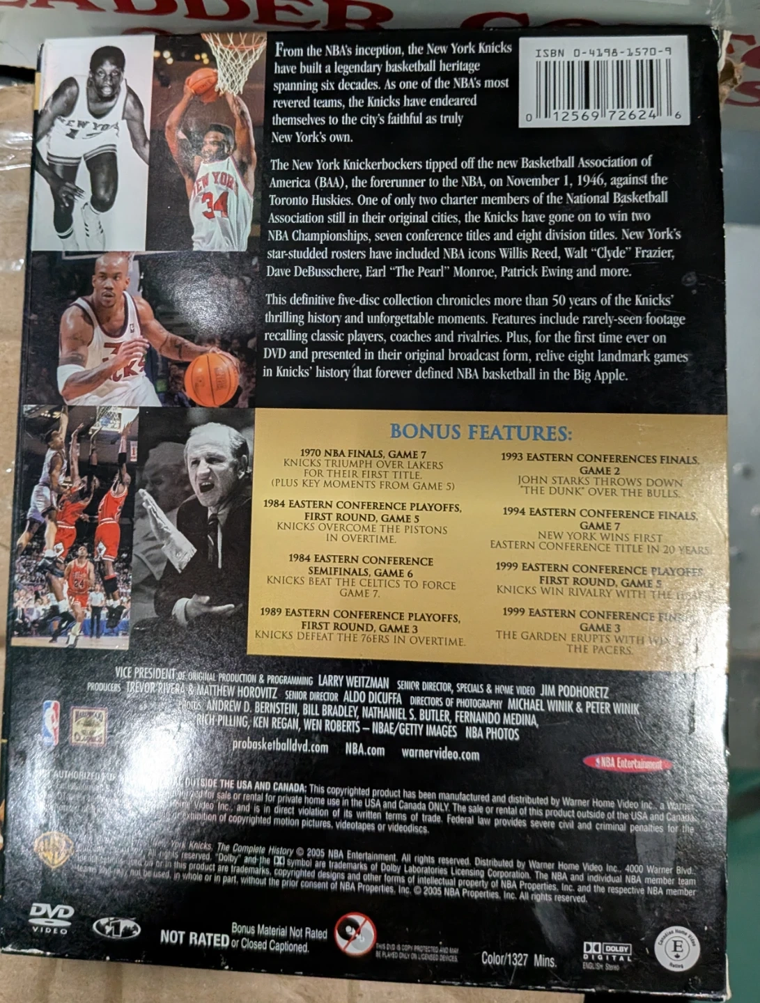 Selling a five-disc DVD collection chronicling more than 50 years of the Knicks' thrilling history. Features include rare footage of classic players, coaches, and rivalries. Relive eight landmark games in Knicks' history forever defined in the Big Apple