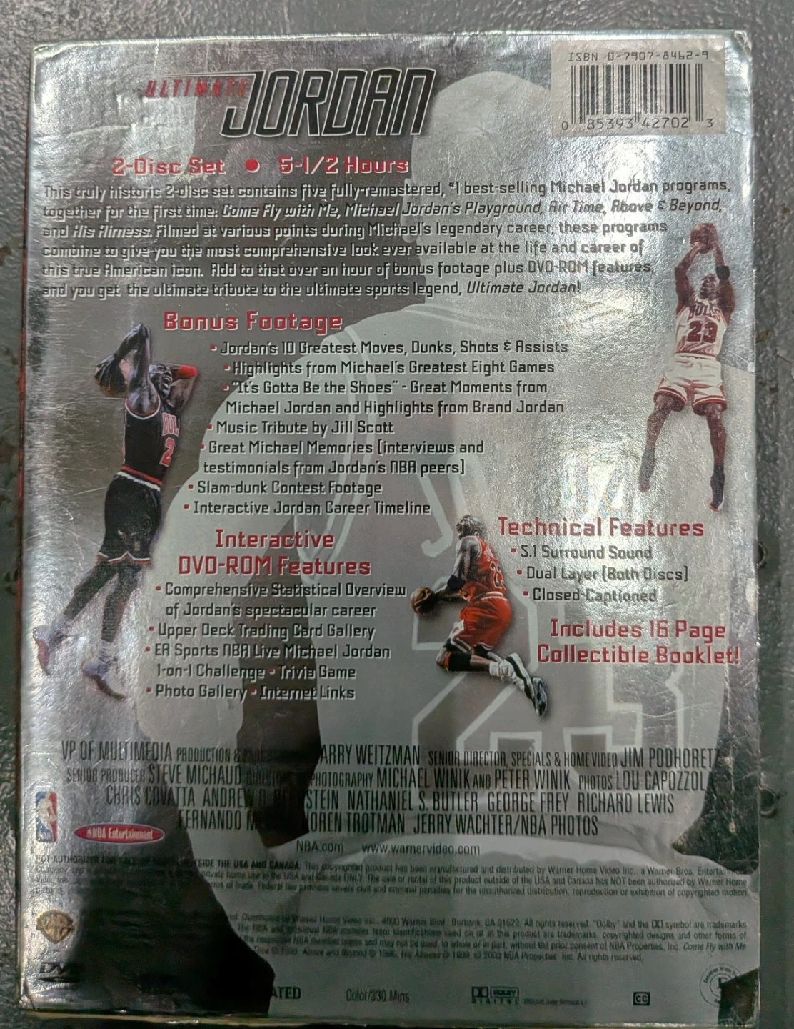 Selling a 2-disc DVD set of Ultimate Jordan! It contains fully remastered, best-selling Michael Jordan programs. Includes a 16-page collectible booklet. The set features S.I Surround Sound and is closed captioned