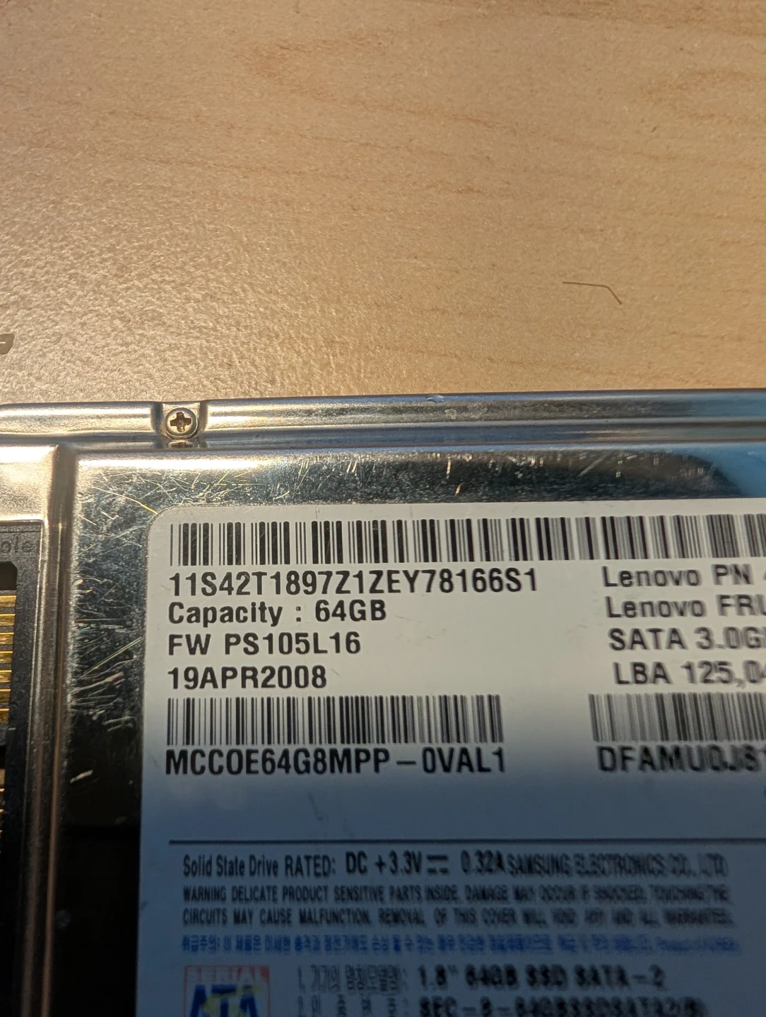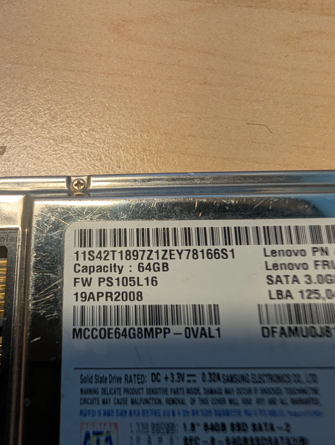 Selling a Lenovo 64GB SSD with SATA 3.0Gbps interface