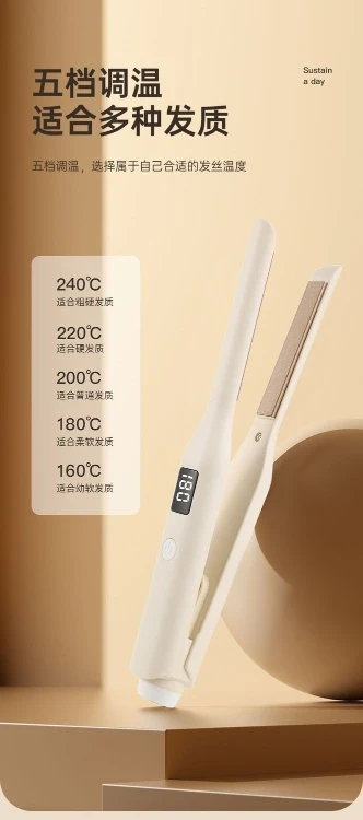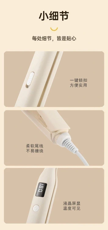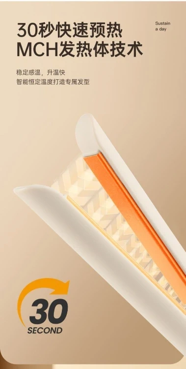 This hair straightener is designed for easy use and portability. It heats up quickly in 30 seconds with MCH heating technology, ensuring a stable temperature for styling. Features include: