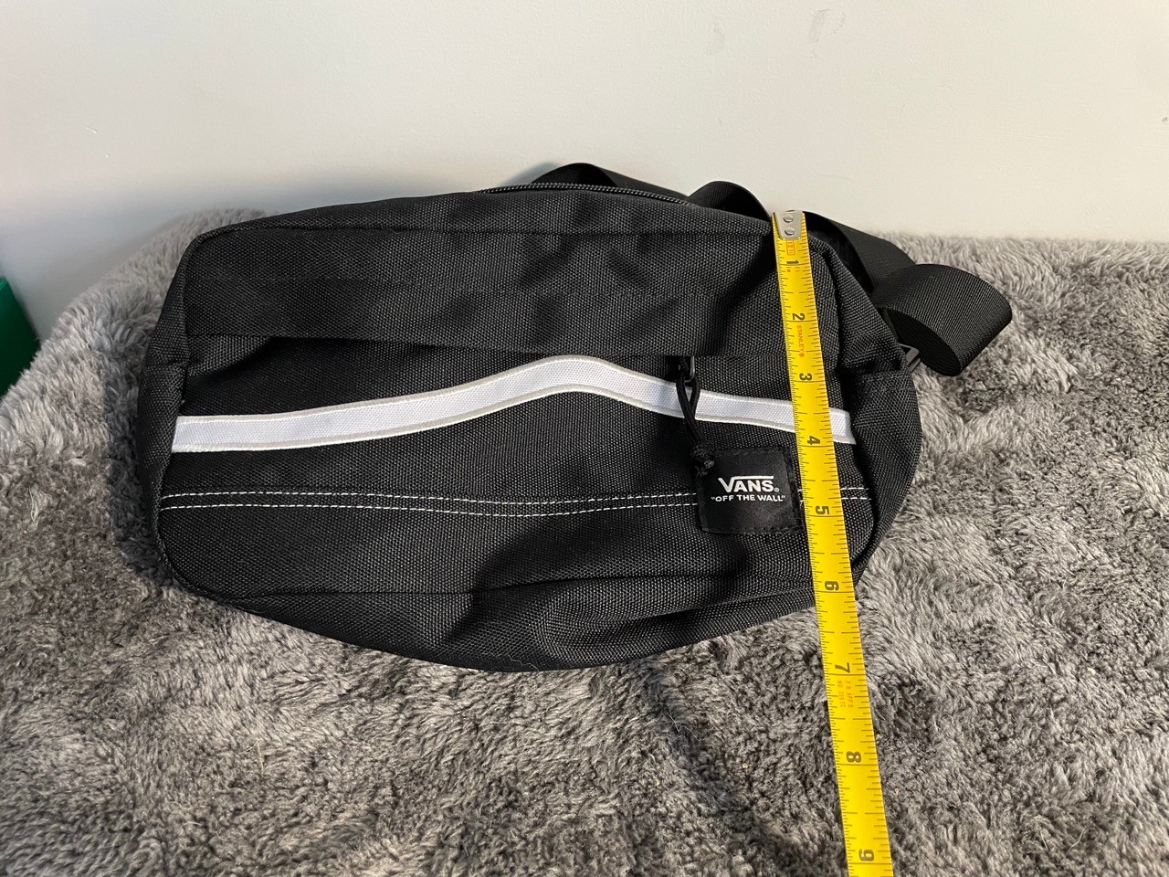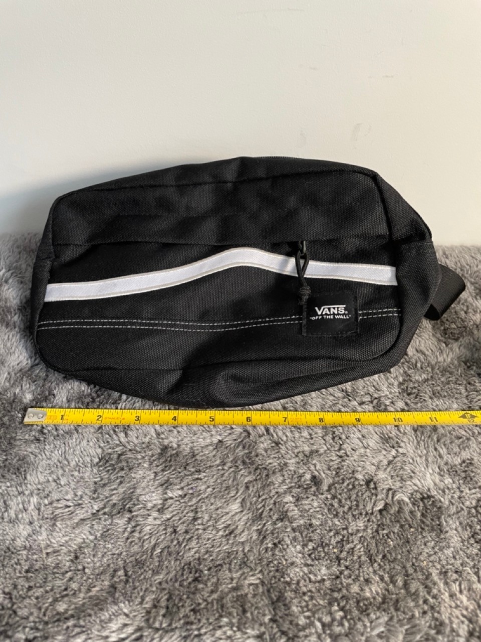 Here's a stylish black Vans crossbody bag! It's in great shape and ready for a new owner. The bag is perfect for carrying your essentials while keeping your hands free. It measures approximately 11 inches in length and 6 inches in height, making it a convenient size for everyday use