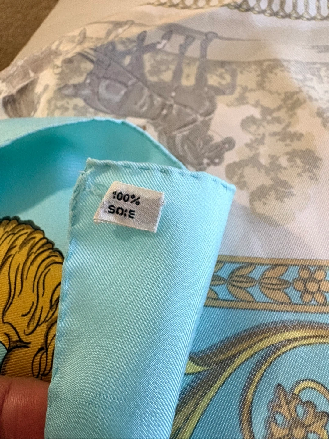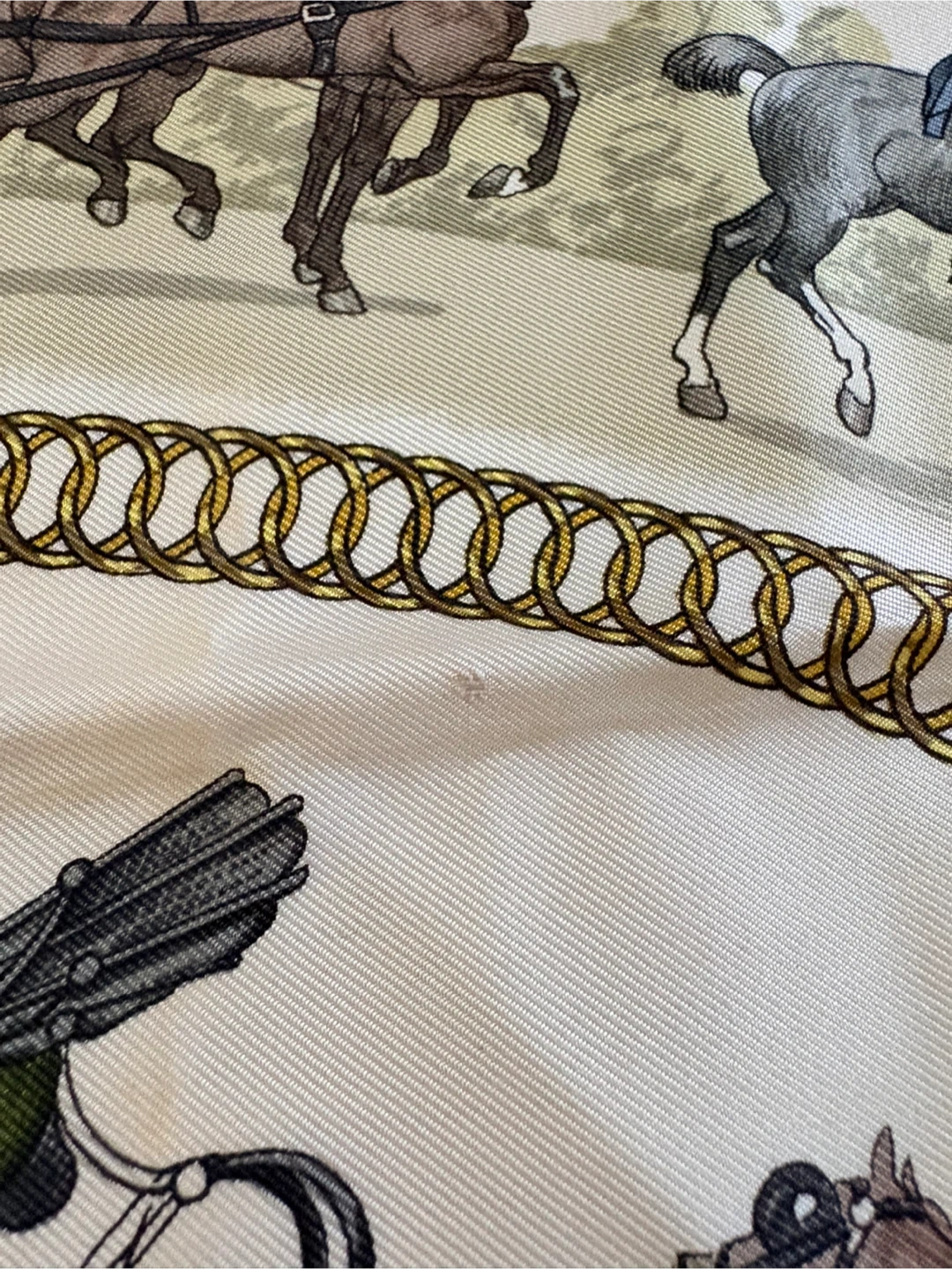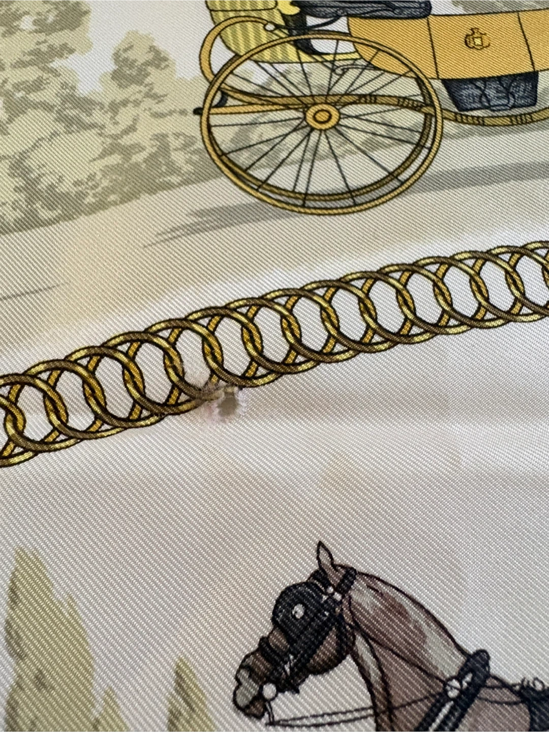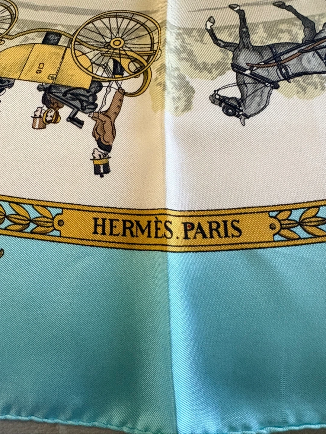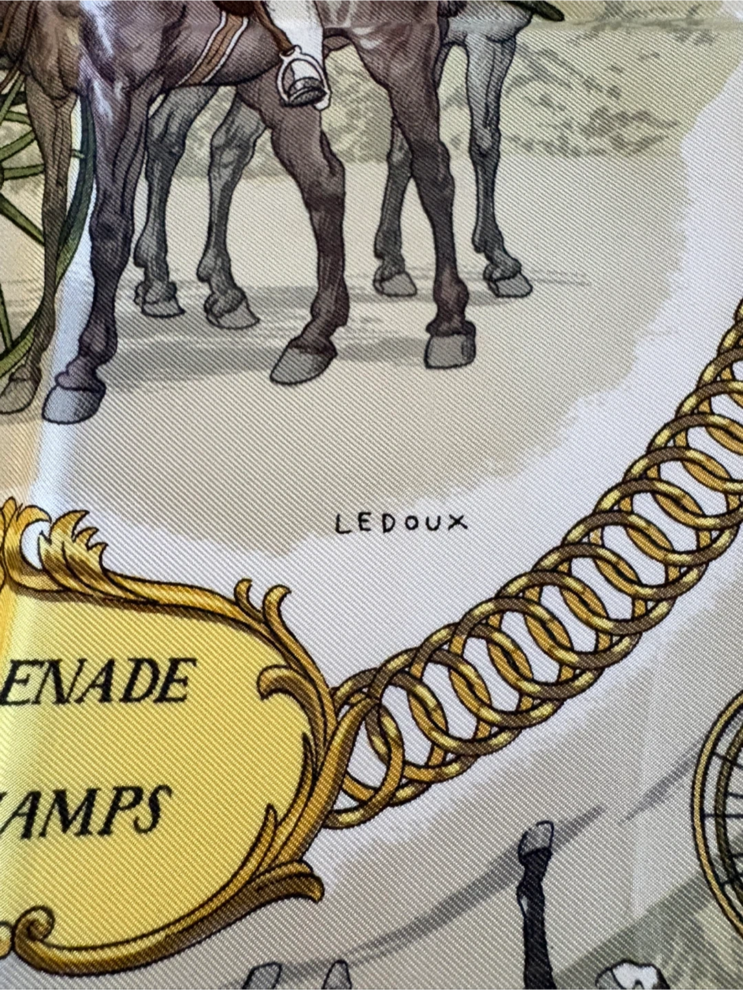 Beautiful Hermès silk scarf featuring the 'La Promenade de Longchamps' design! The scarf has a lovely pattern with horses and carriages, and it's in great condition. A classic piece from Hermès Paris to add to your collection