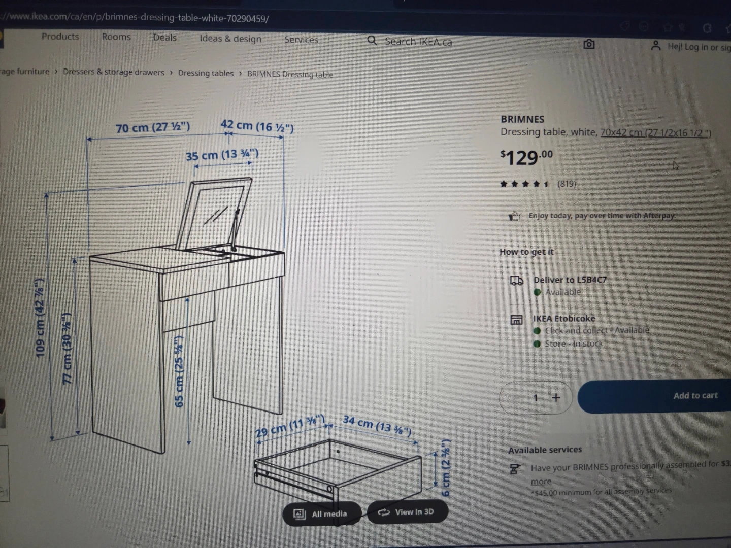 Selling a white IKEA Brimnes dressing table. It's in good condition with some minor signs of use. The dimensions are 70x42 cm (27 1/2x16 1/2 inches). I bought this originally for $129. It's a great piece for any bedroom!