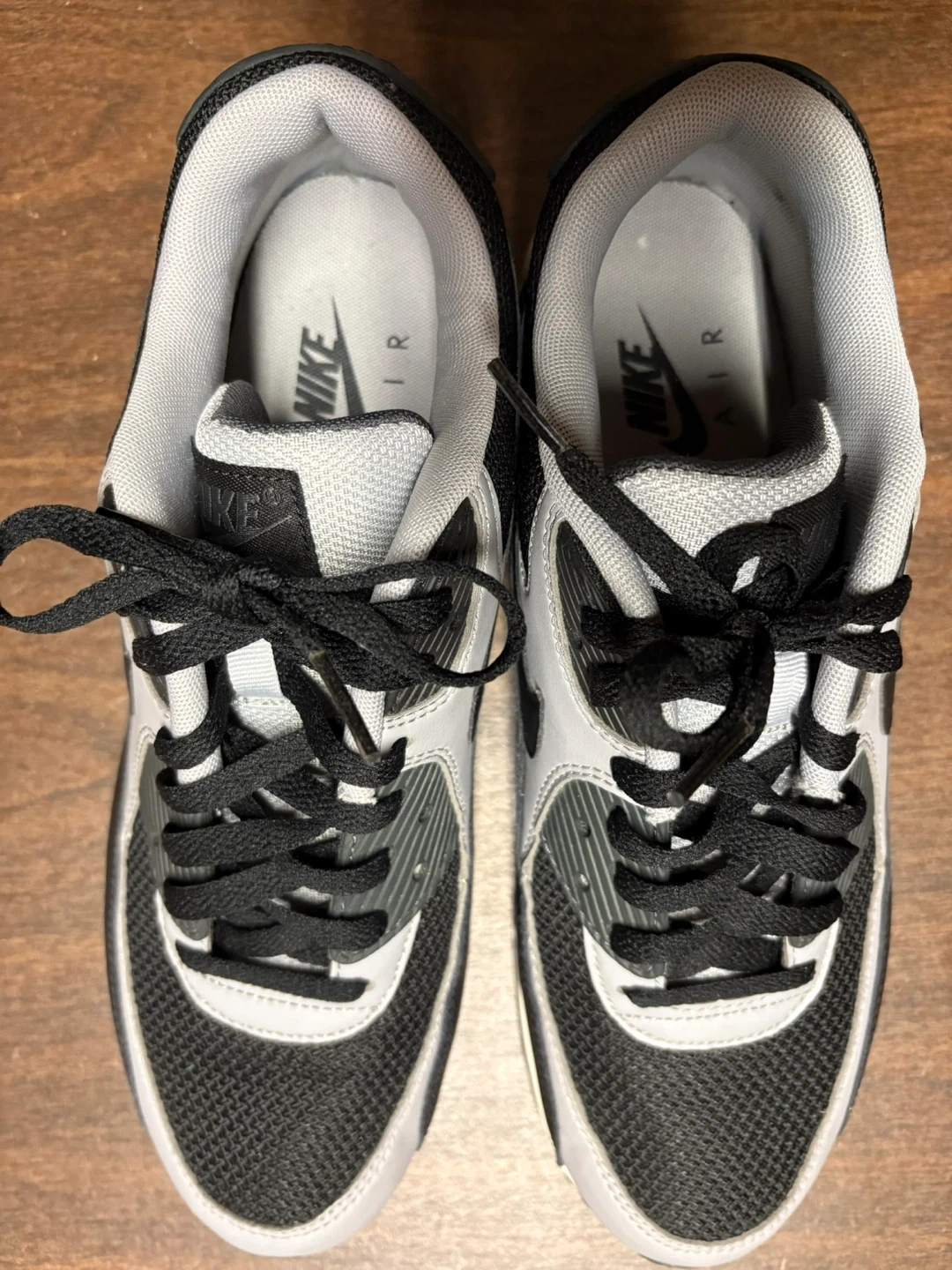 Selling a pair of Nike Air Max 90 sneakers in black and grey. They are a US size 10. This pair of stylish shoes are in a new condition. It’s a classic and comfortable shoe! Better to fit 9.5/9 since it is NOT wide width.
