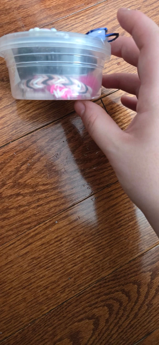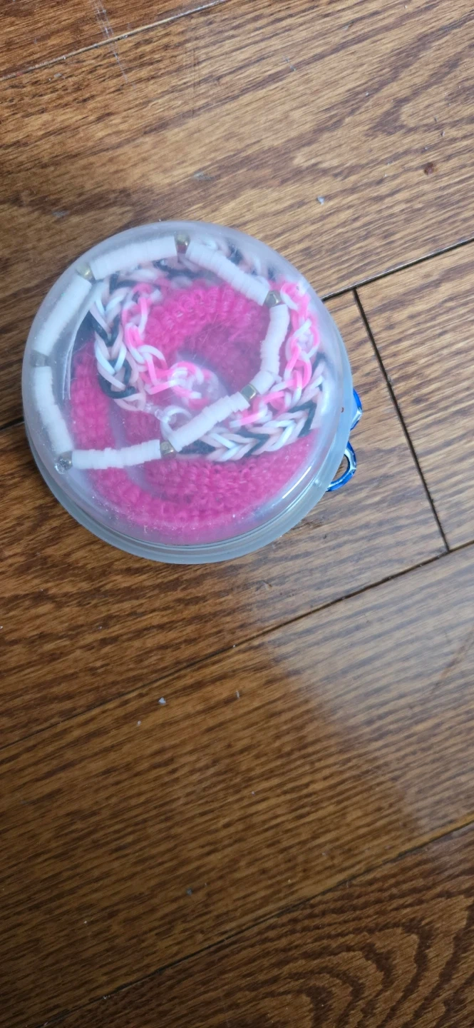 Selling a cute handmade loom band bracelet set! It comes in a handy container to keep everything organized and safe, perfect for a little gift or just for fun