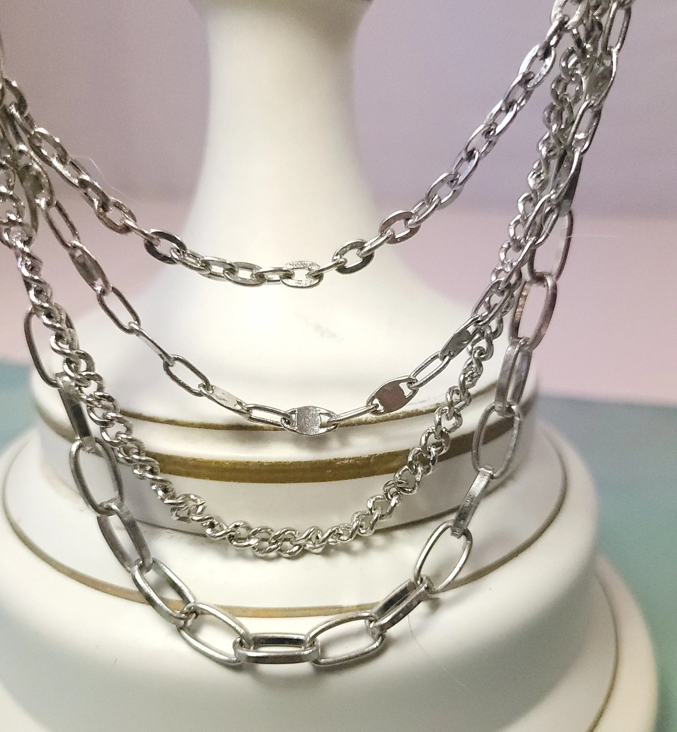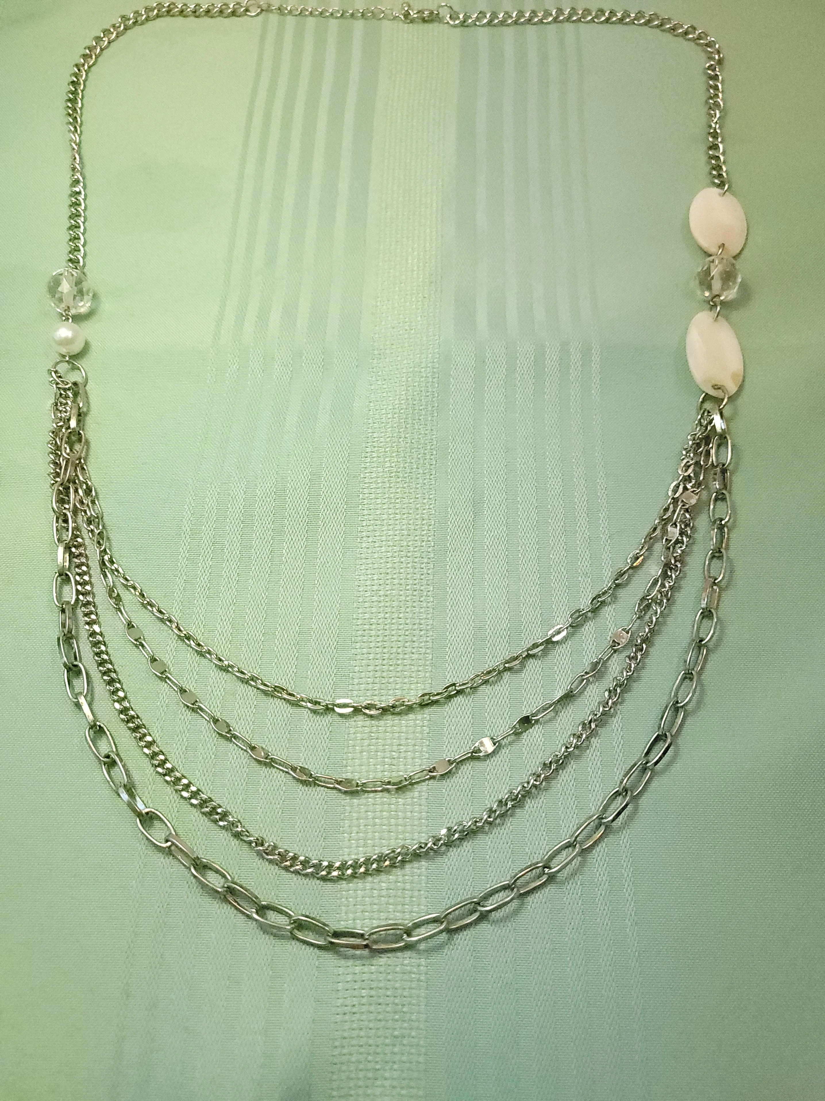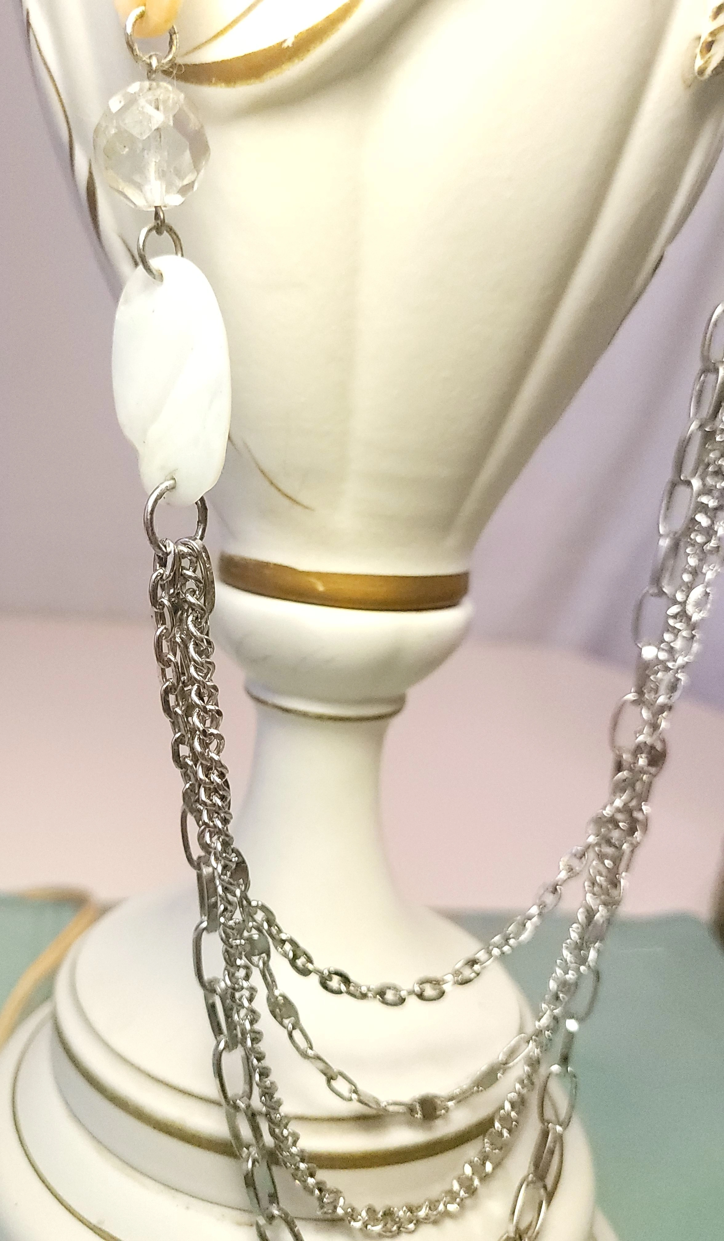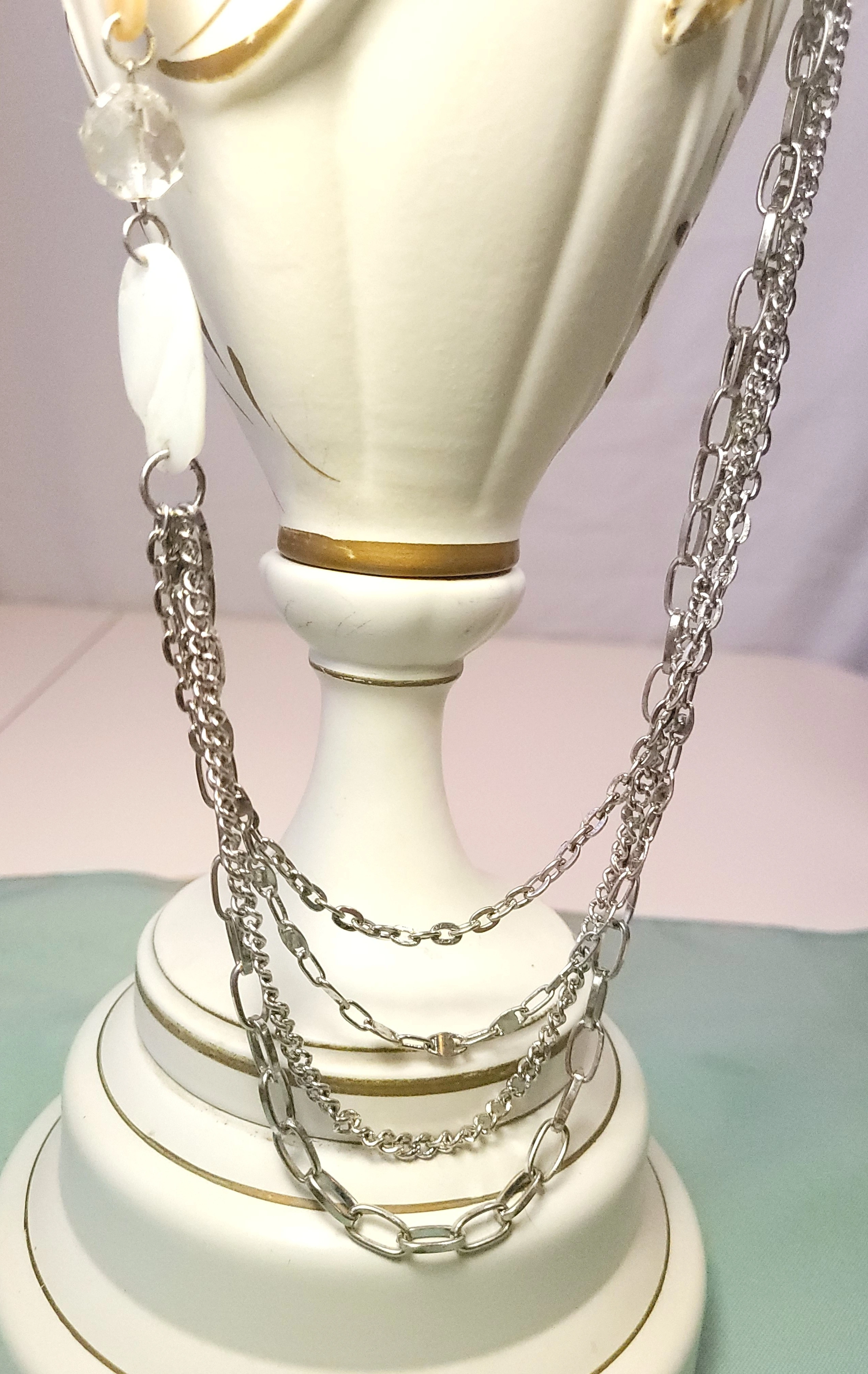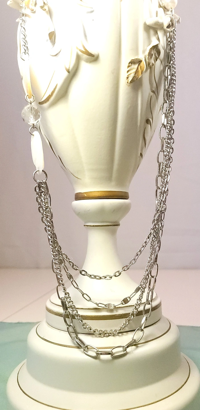 Vintage 4-Strand Silver Tone Statement Necklace 37"