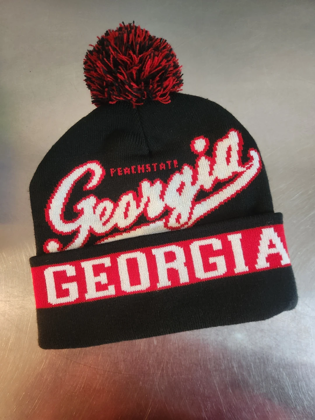 Keep warm with this Georgia Peach State knit toque! It features a classic design with the Georgia logo and a fun pompom on top. Perfect for showing off your state pride or just staying cozy during those chilly Canadian days