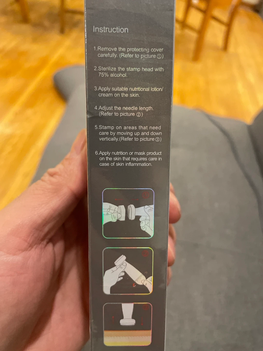 Selling a new bioneedle with adjustable needle size! It comes in its original box and includes instructions for use. To use, remove the protecting cover, sterilize the stamp head with 75% alcohol, apply a suitable nutritional lotion or cream, adjust the needle length, and stamp on areas that need care by moving up and down vertically. Afterward, apply nutrition or a mask product to the skin if inflammation occurs