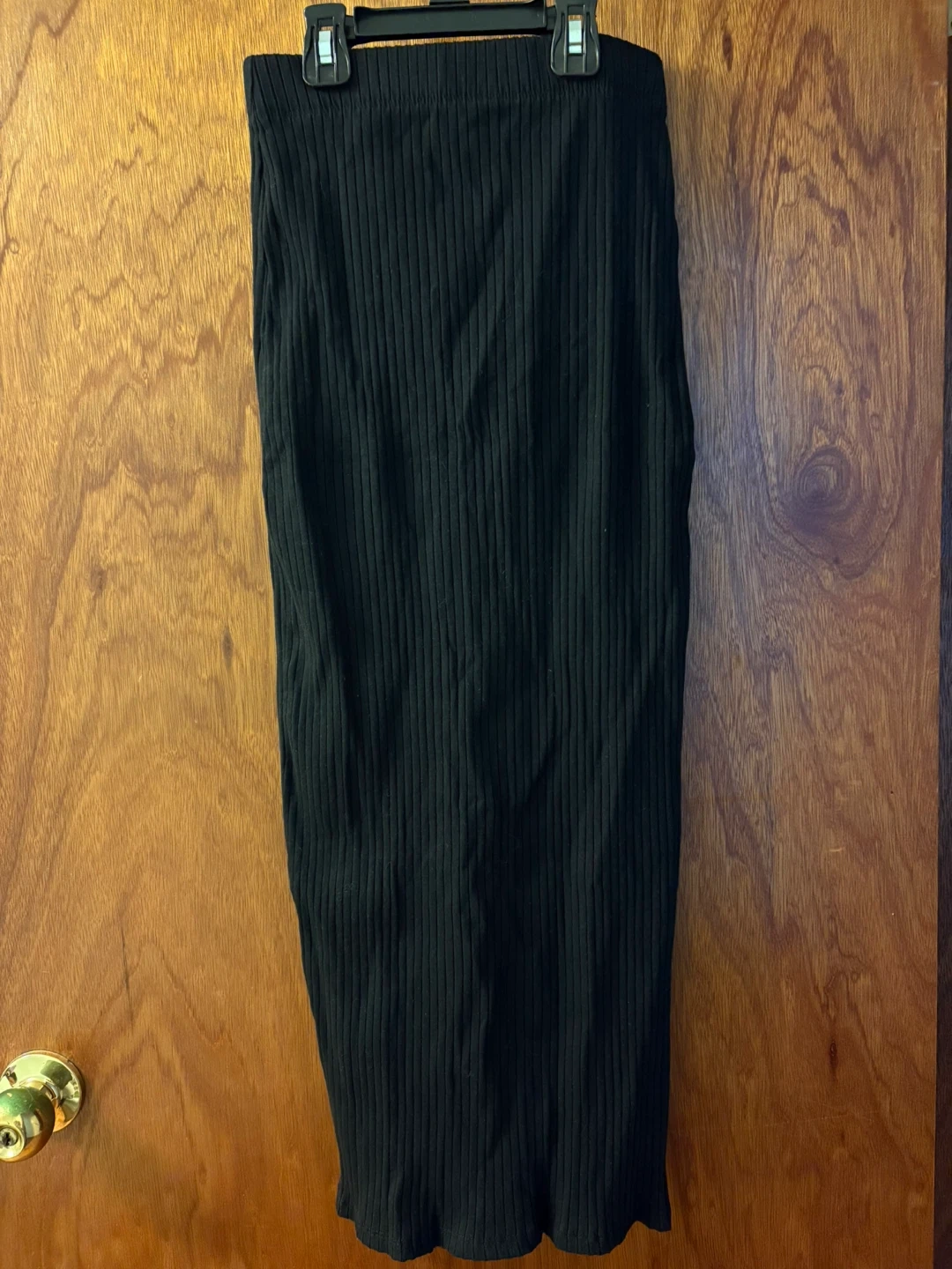 A free Zara black ribbed knit skirt in size small. It's in great condition and made of a comfy blend of 90% cotton and 10% elastane. It’s stretchable. Perfect for a casual or dressed-up look!