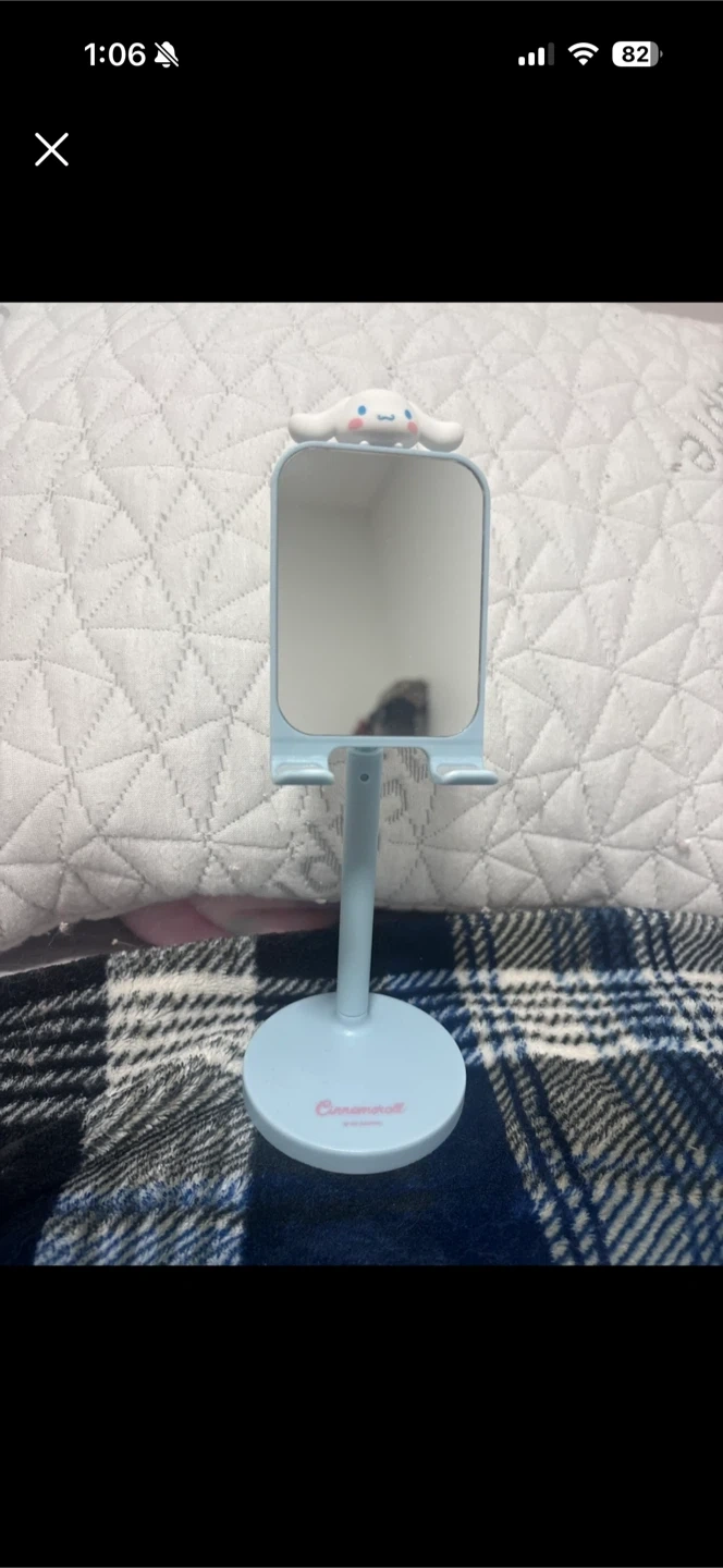 Super cute Cinnamoroll standing mirror! Perfect for adding a touch of kawaii to your space. It's in great condition and ready to brighten up your vanity or desk pick up cash only