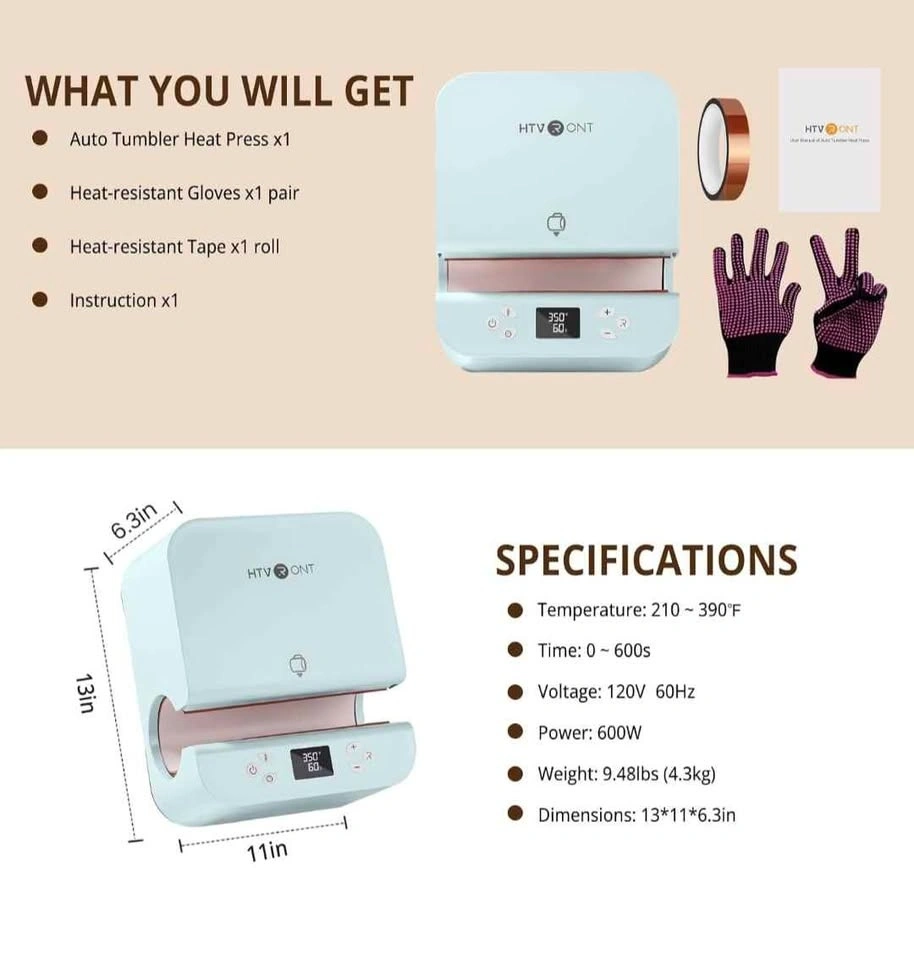 HTVRONT Auto Tumbler Heat Press – Brand New