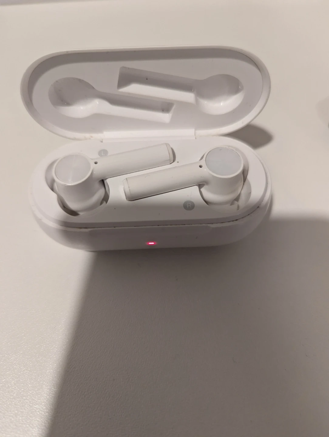 Selling a pair of white OnePlus wireless earbuds as is. Only the left side works (tested). They come with their charging case (but no charging cable for the case).