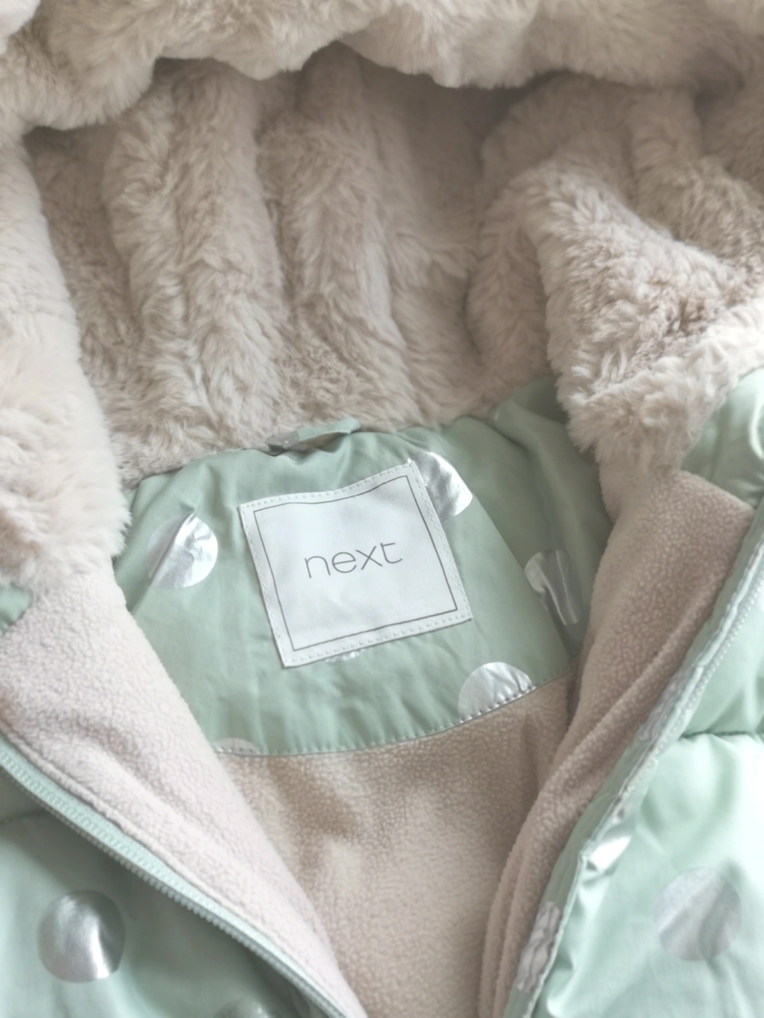 Super cute and cozy 3T snowsuit from Next! This snowsuit is perfect for keeping your little one warm during the colder months. It's in excellent condition and features a soft, plush lining in the hood for extra comfort. Size is 3T.