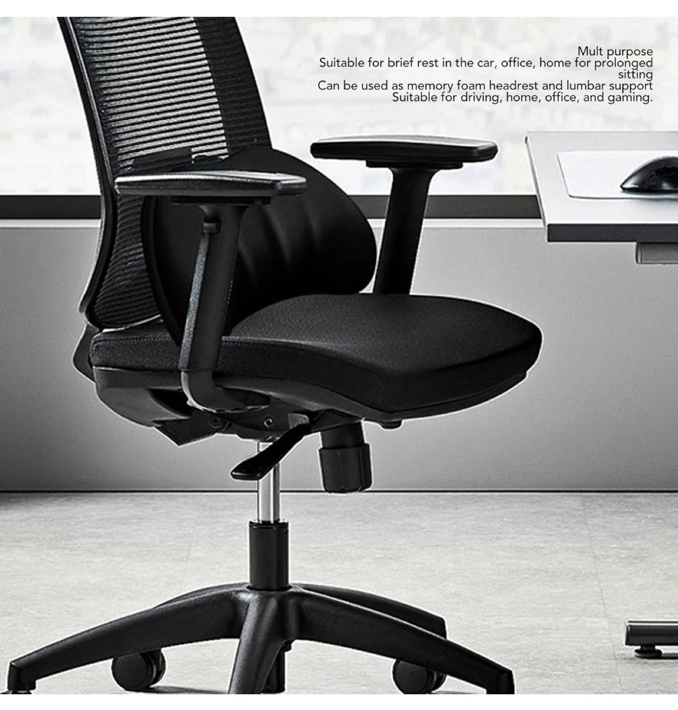 Get comfortable support with this memory foam lumbar cushion! It's designed for use in cars, offices, or at home. The integrated full curve design closely adheres to the body's curves, allowing for a comfortable experience. It's also resistant to dirt and stains