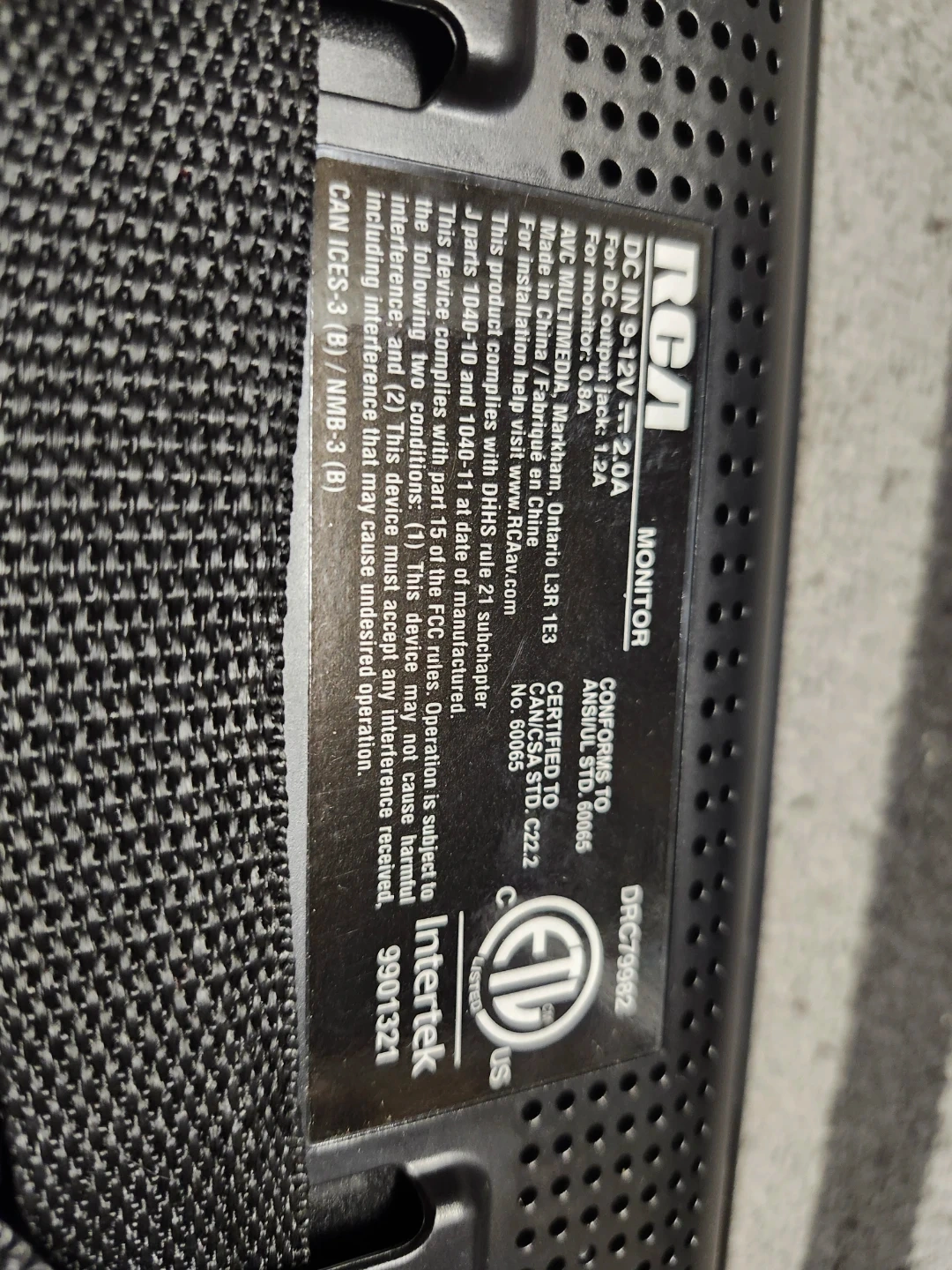 Selling an RCA monitor, model DRC79902. It comes with a strap and DC in 9-12V 2.0A.