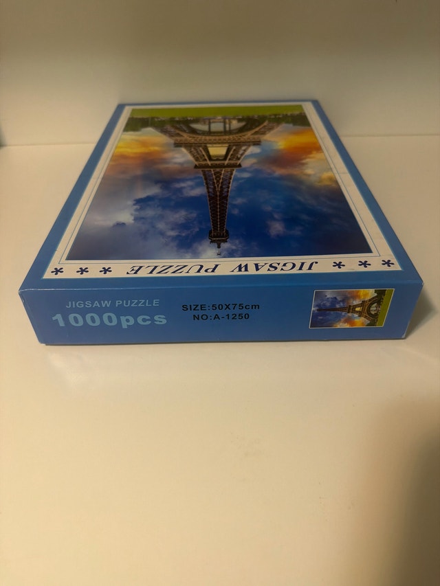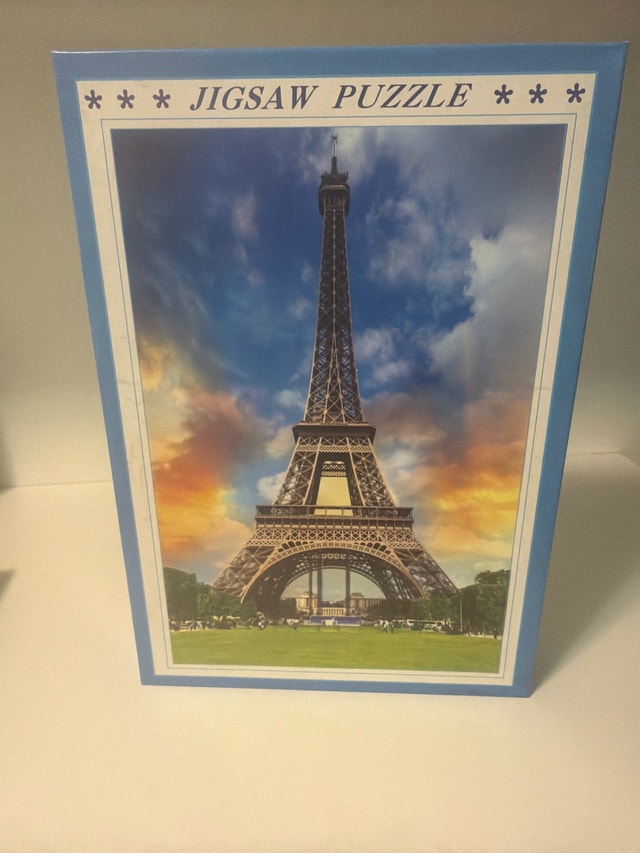 Discover the charm of Paris with this 1000-piece jigsaw puzzle, featuring the iconic Eiffel Tower in a vibrant, detailed image and sized at 50x75cm. This puzzle has been previously enjoyed, is complete, and is ready for a new home, inviting you to piece together a classic landmark and enjoy a delightful pastime. It's a wonderful way to relax and engage your mind, whether you're an avid puzzler or just looking for a creative activity!