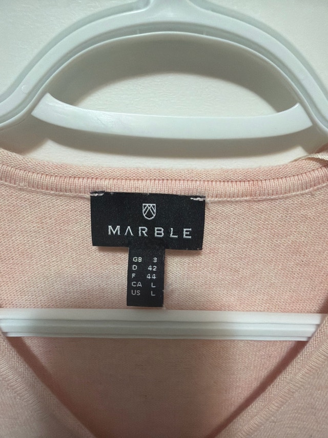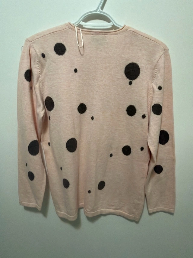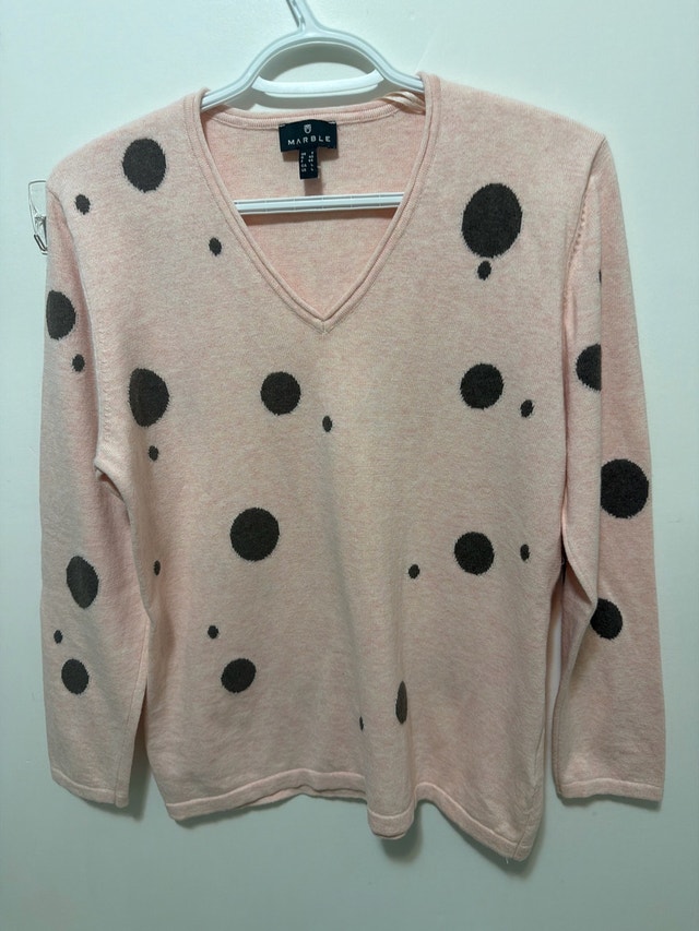 Elevate your wardrobe with this elegant Marble sweater, featuring a stylish polka dot pattern on a soft, pink backdrop. This pre-owned, long-sleeve, v-neck sweater, in size large, offers both comfort and a touch of sophistication. It's in good condition, ready to add a dash of fun to any outfit. Specifications: - Brand: Marble - Size: L - Colour: Pink - Pattern: Polka Dot - Sleeve Length: Long Sleeve - Neckline: V-Neck If the ad is up, the sweater is available! B-7