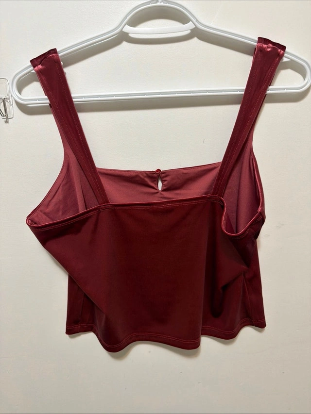 This Wild Fable top, size medium, is a stylish addition to any wardrobe. The burgundy colour is perfect for adding a touch of sophistication to your outfit. Note that it is in gently condition, but still has plenty of life left. It features a flattering cut and comfortable fit, perfect for a night out or a casual day. Specifications: - Brand: Wild Fable - Size: M - Colour: Burgundy Looking for something that says, 'I'm stylish but also super comfy?' This top is your answer! If the ad is up, it's still available!