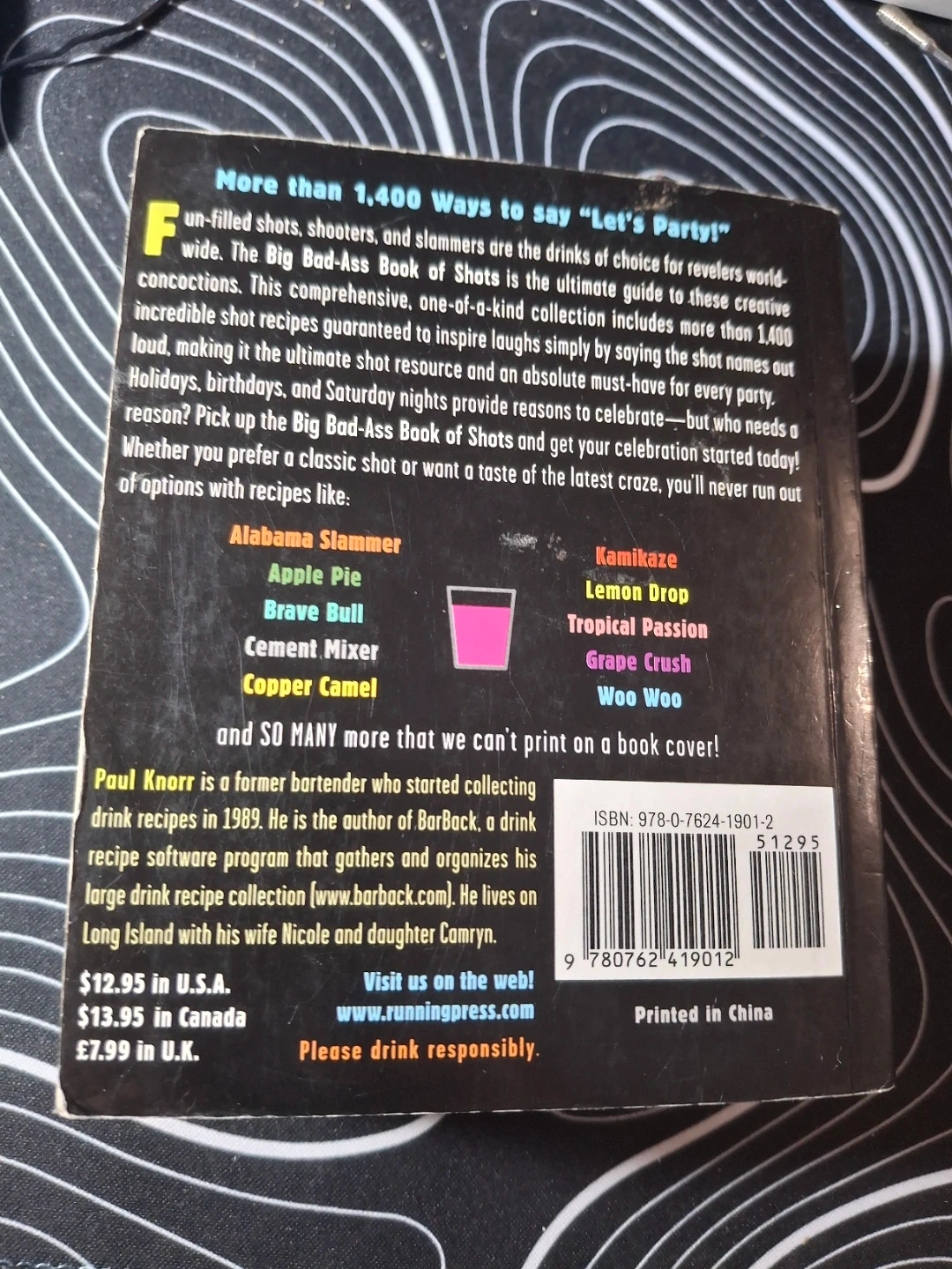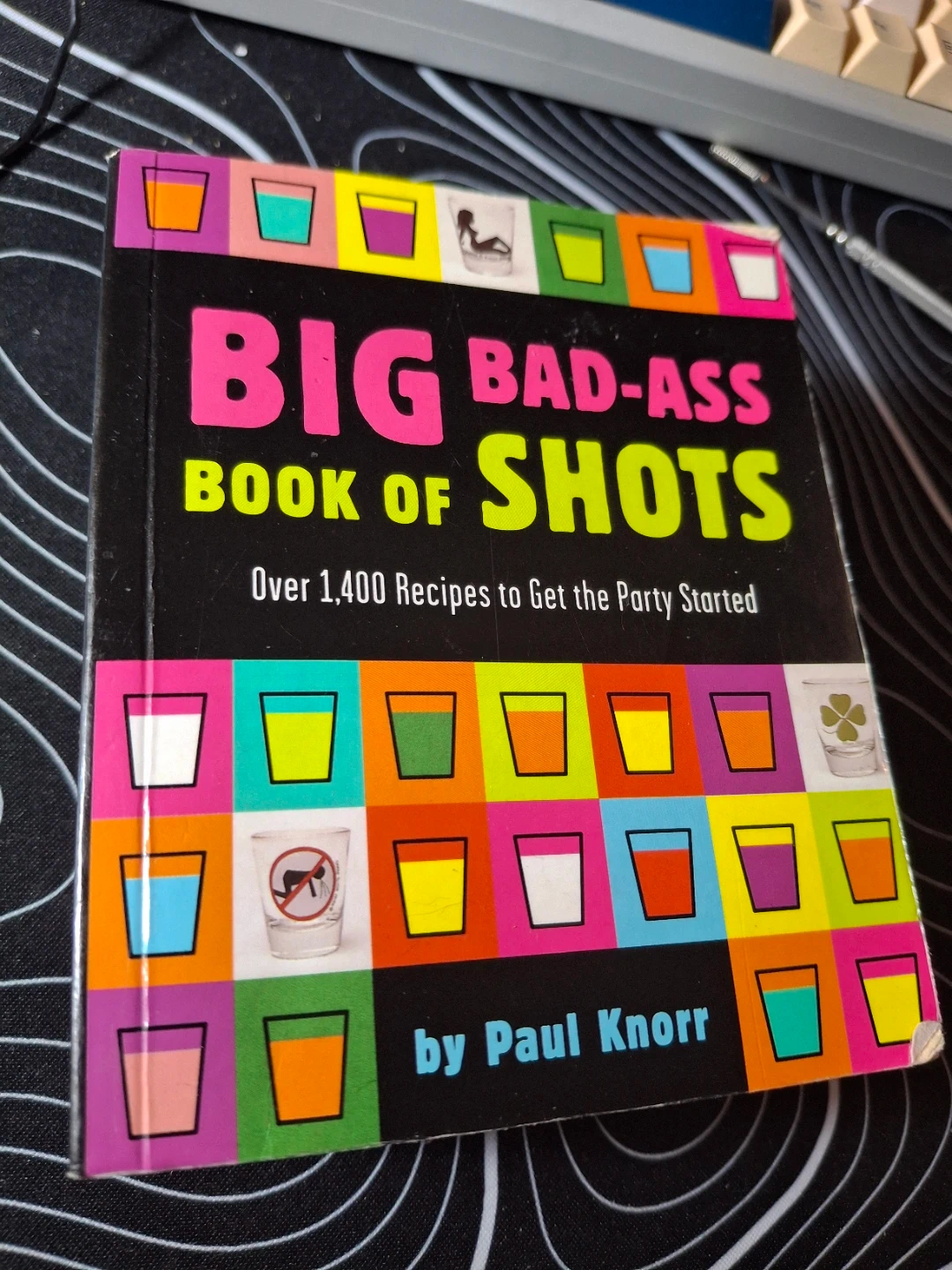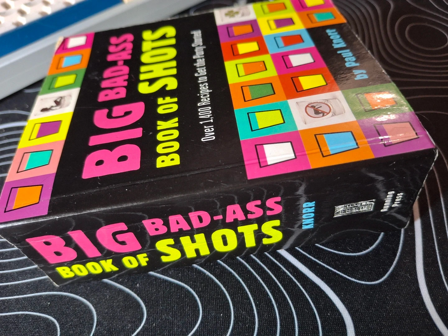 Selling the Big Bad-Ass Book of Shots by Paul Knorr! It has over 1,400 recipes to get the party started. It's a comprehensive collection of creative shot recipes. This book is your ultimate guide to making fun shots for any occasion!