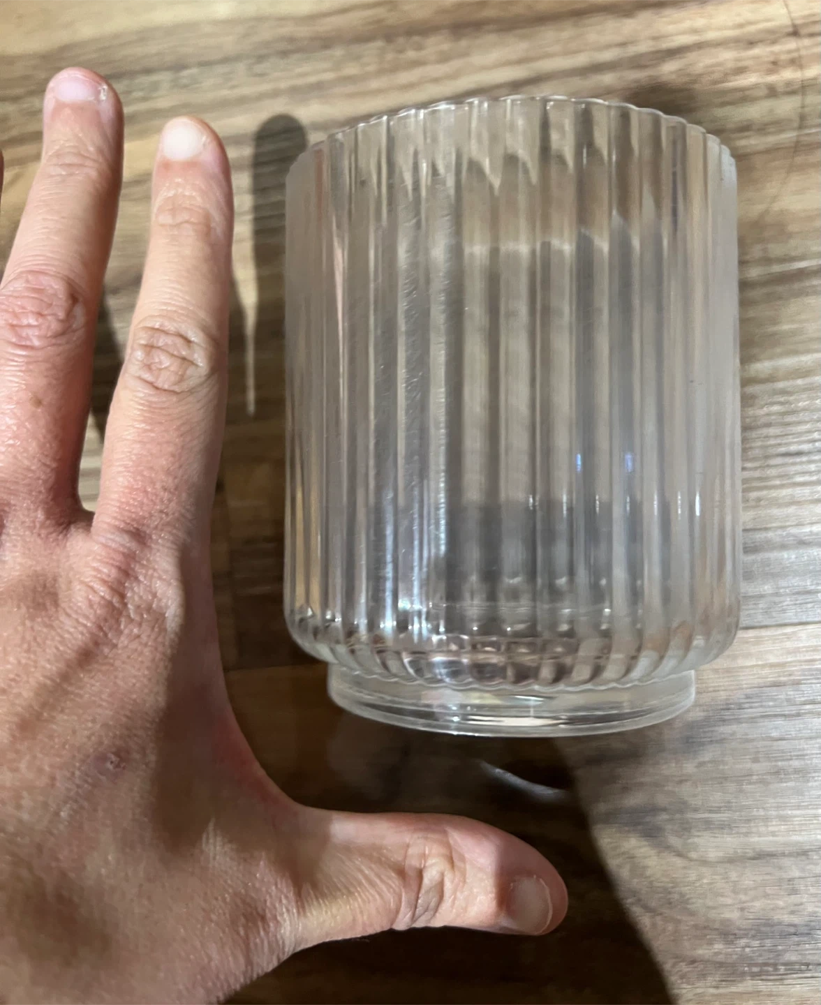 Gifting a clear plastic candle holder or cup with a ribbed design. Have 7 of them.