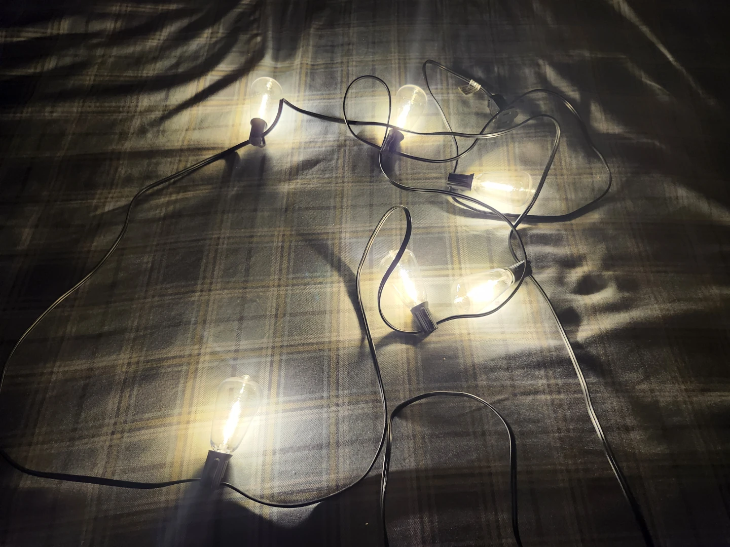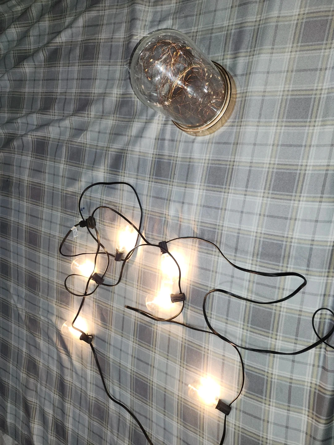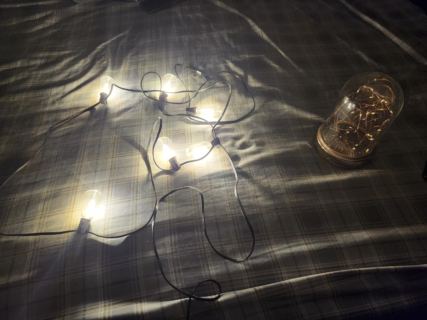 Selling a string of lights and a decorative light. They both give off a warm glow and would be perfect for adding a cozy touch to any room