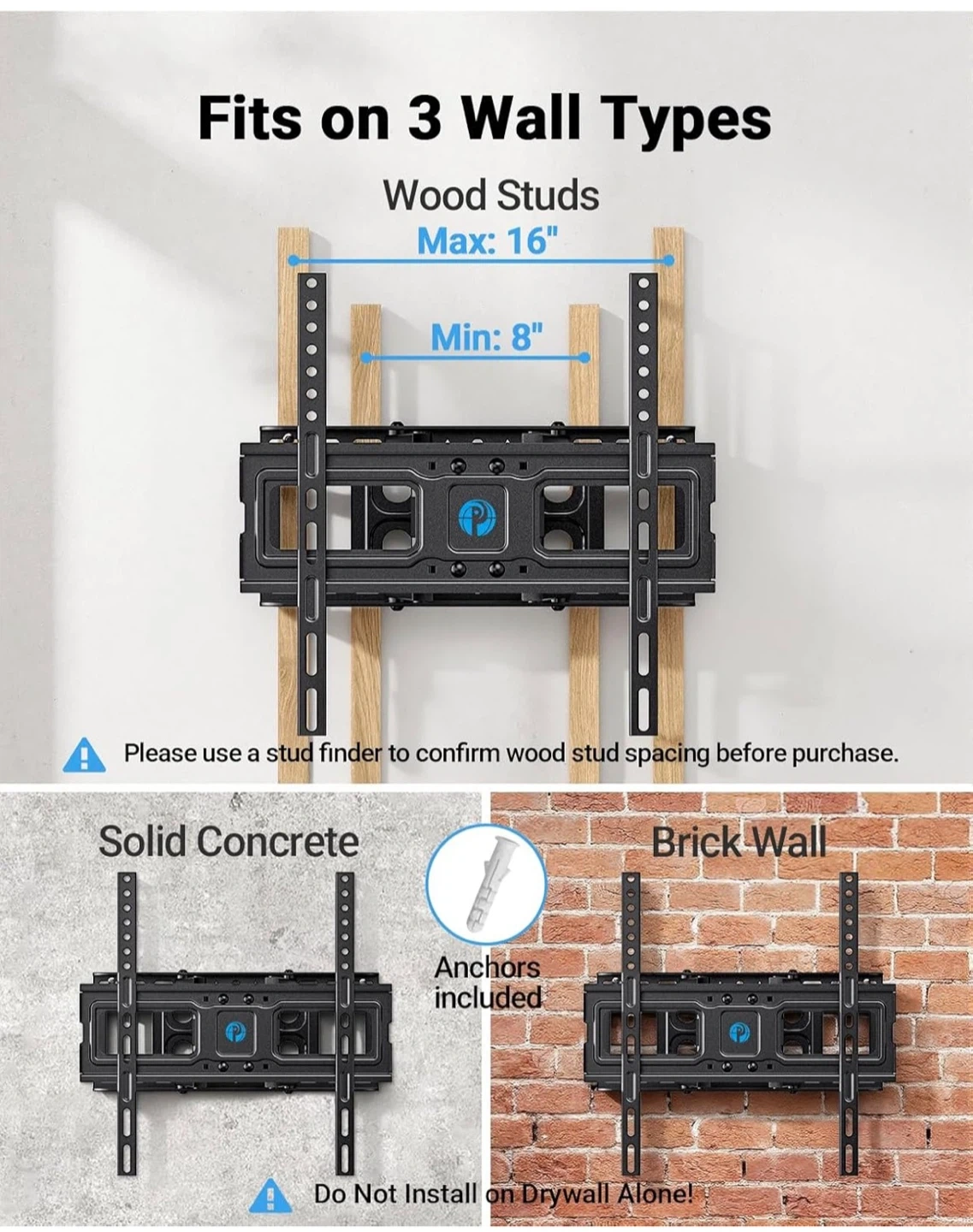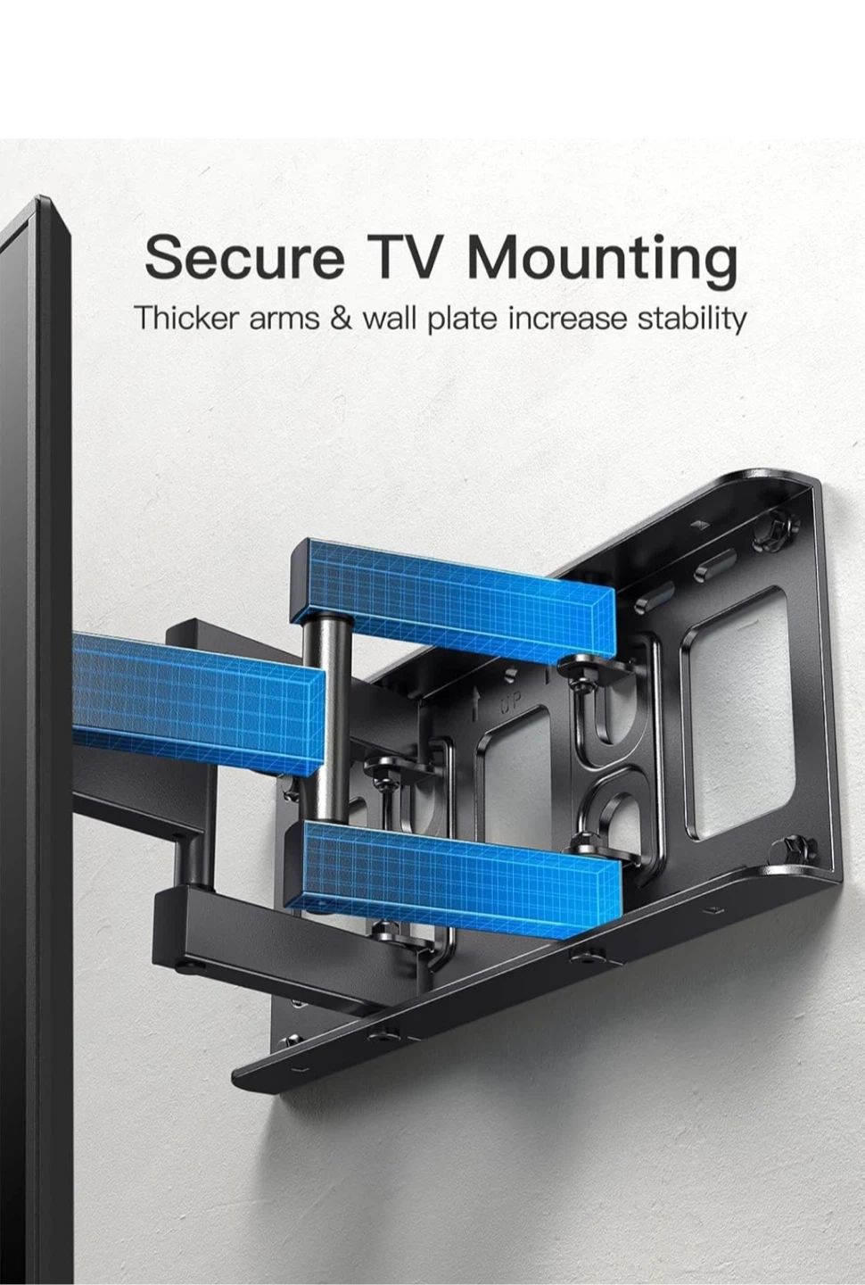 Selling a TV wall mount that fits TVs from 26 to 74 inches. It's universally compatible and can hold a max load of 99 lbs. It fits on 3 wall types: wood studs (max 16", min 8"), solid concrete, and brick walls. Secure TV mounting with thicker arms and wall plate for increased stability. Used for a month with a 65inch TV works amazing. Only selling because we got a bigger TV