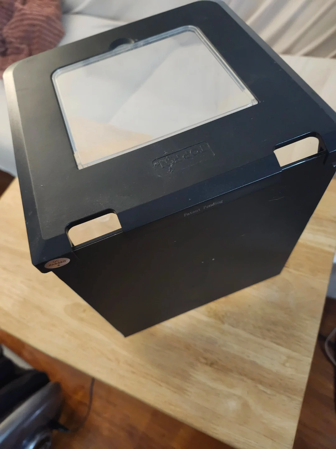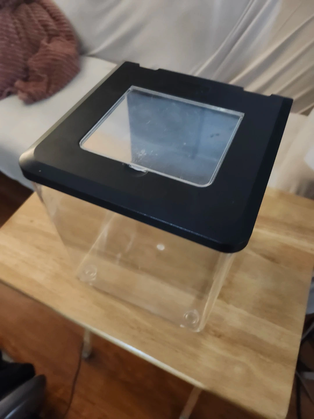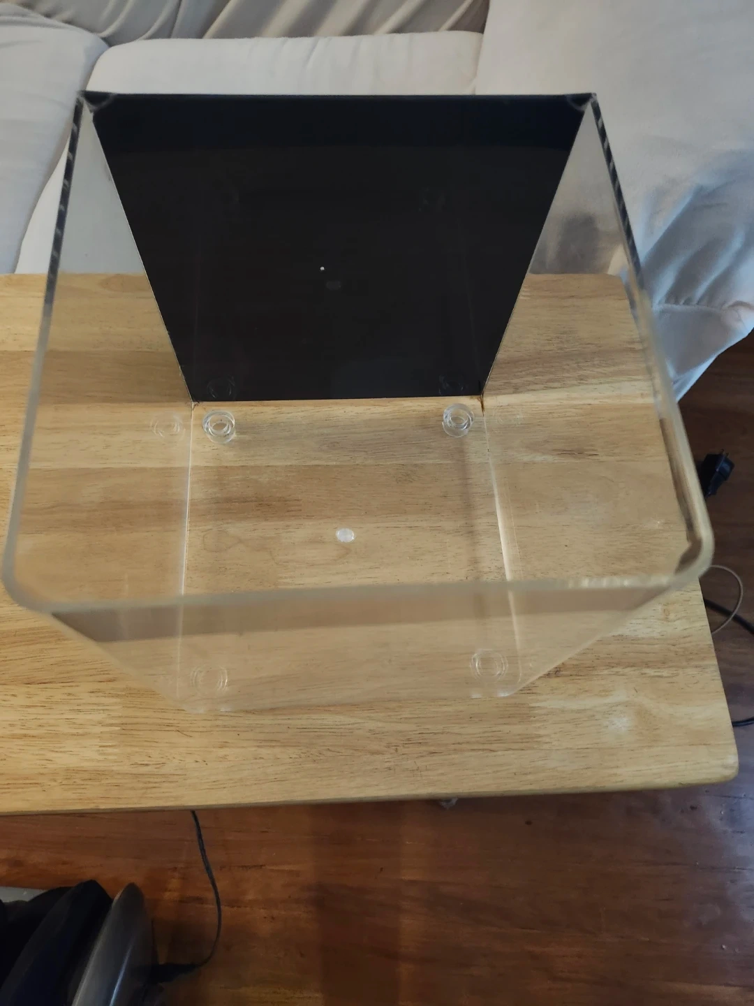 It's a 2.5-gallon aquarium with a sleek design, perfect for a small space. Great for bettas or small fish! It has a clear tank and black trim. free aquarium pebble