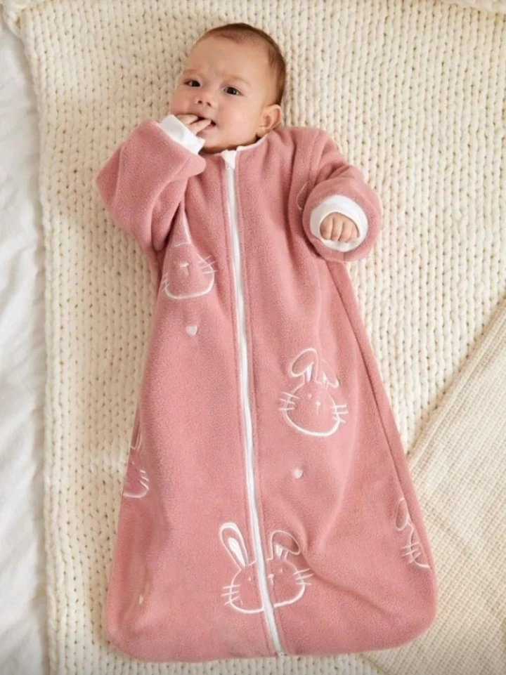 Snuggle your little one in this adorable pink baby sleeping bag! It features a cute bunny design and is made of a soft, cozy material to keep your baby warm and comfortable during sleep. Perfect for a good night's rest!