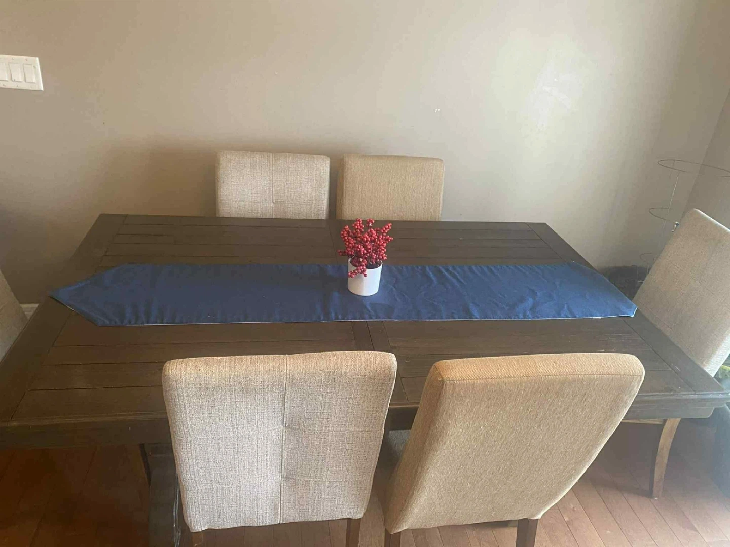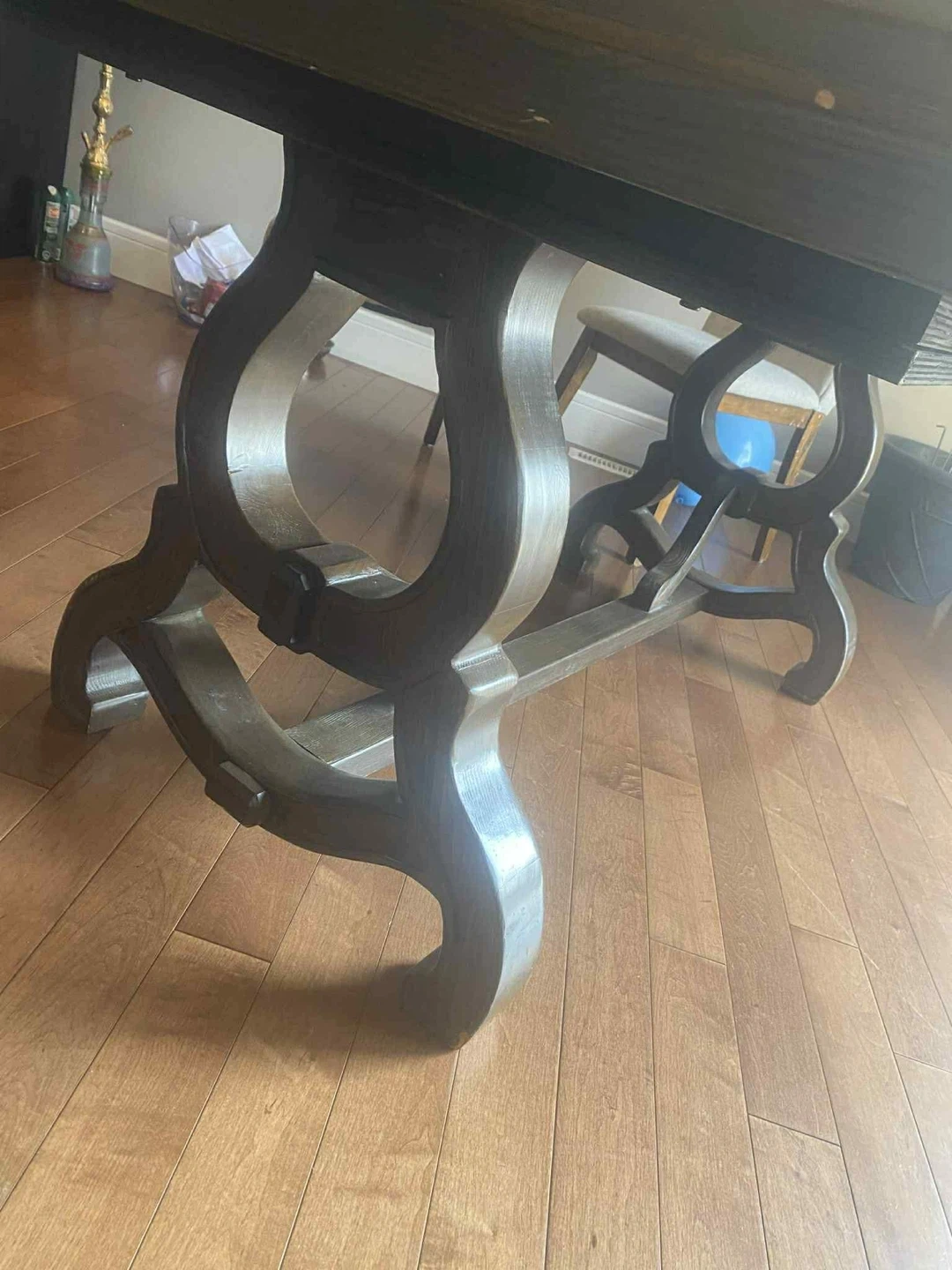 Selling a dining table with its extension for the 8 chairs. In a good condition there small scratches but still it’s strong nice dining table. Free pets, free smoke.