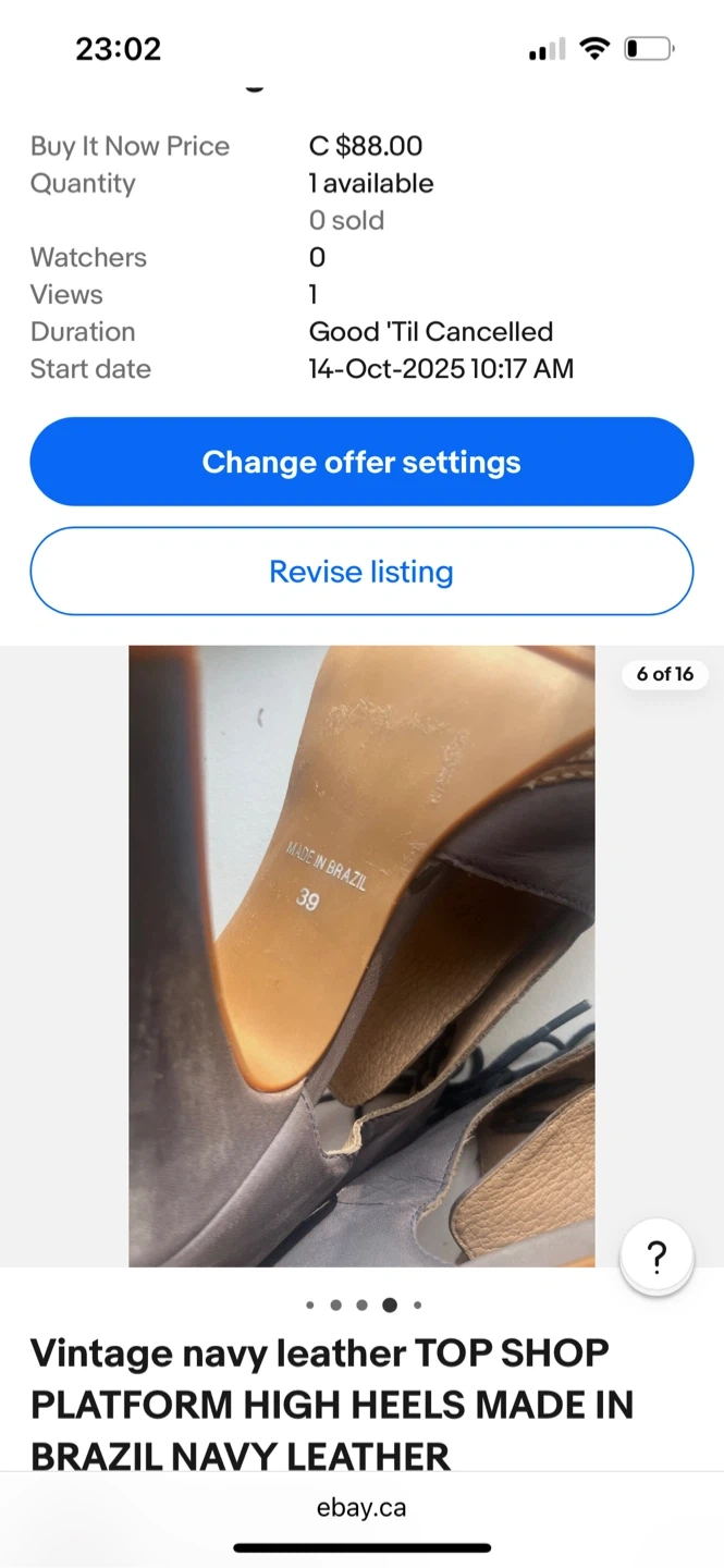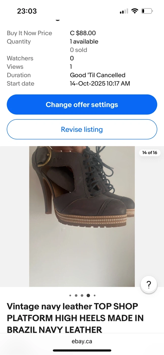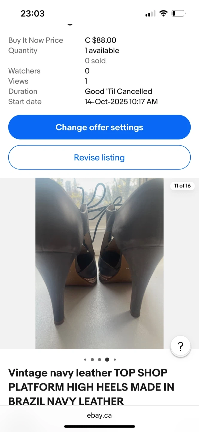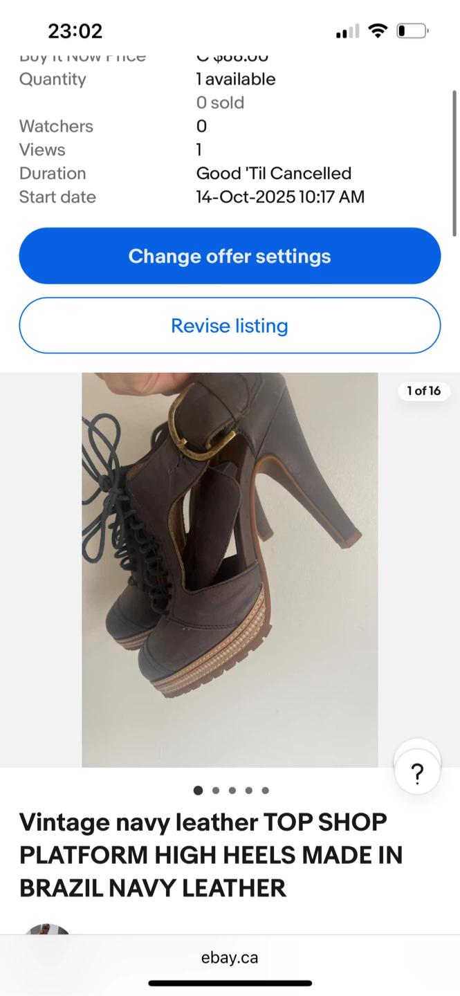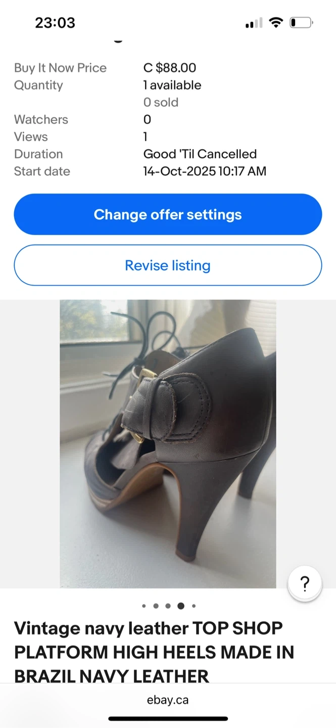 Selling a pair of vintage navy leather platform high heels from Topshop. These heels are made in Brazil and have a unique, stylish look. They are in good condition and ready for a new home!