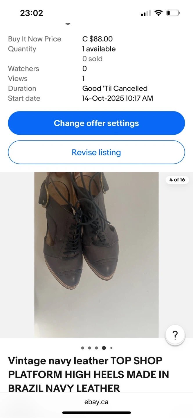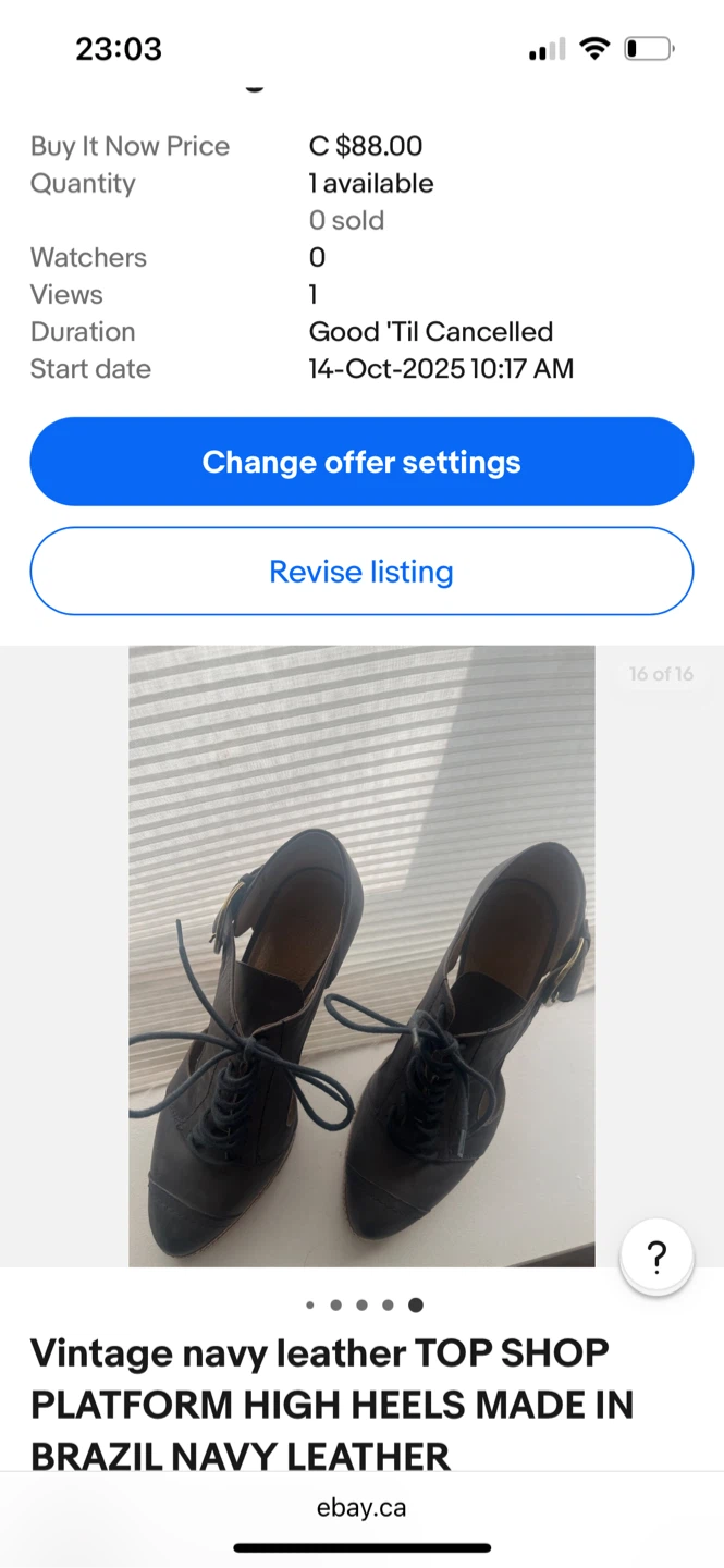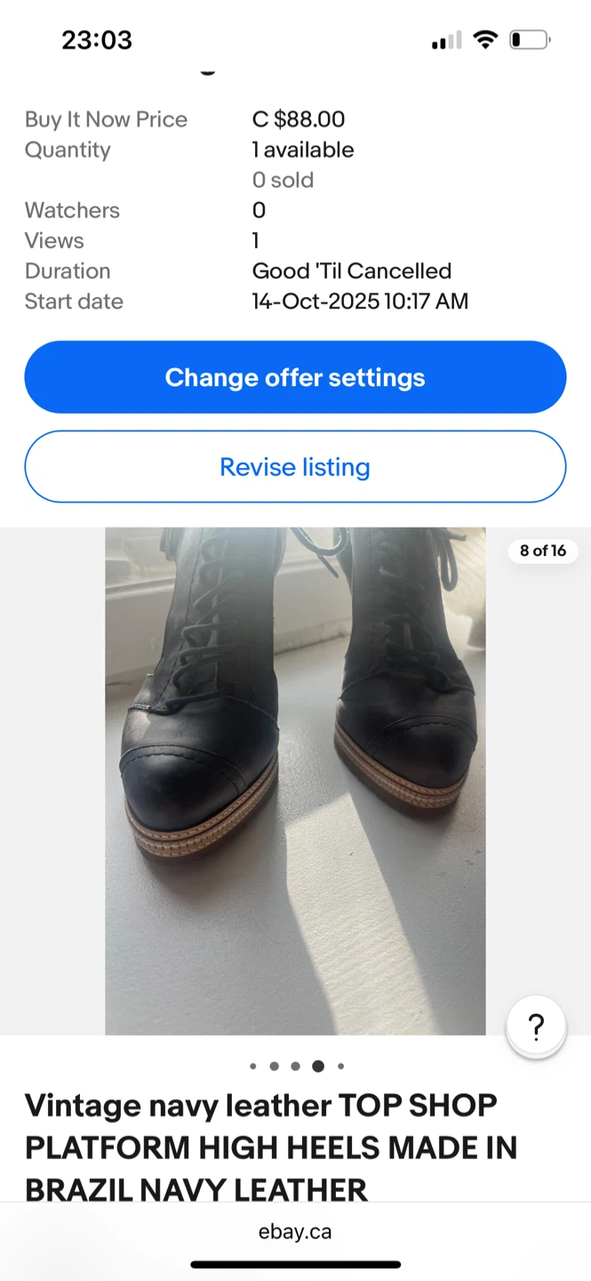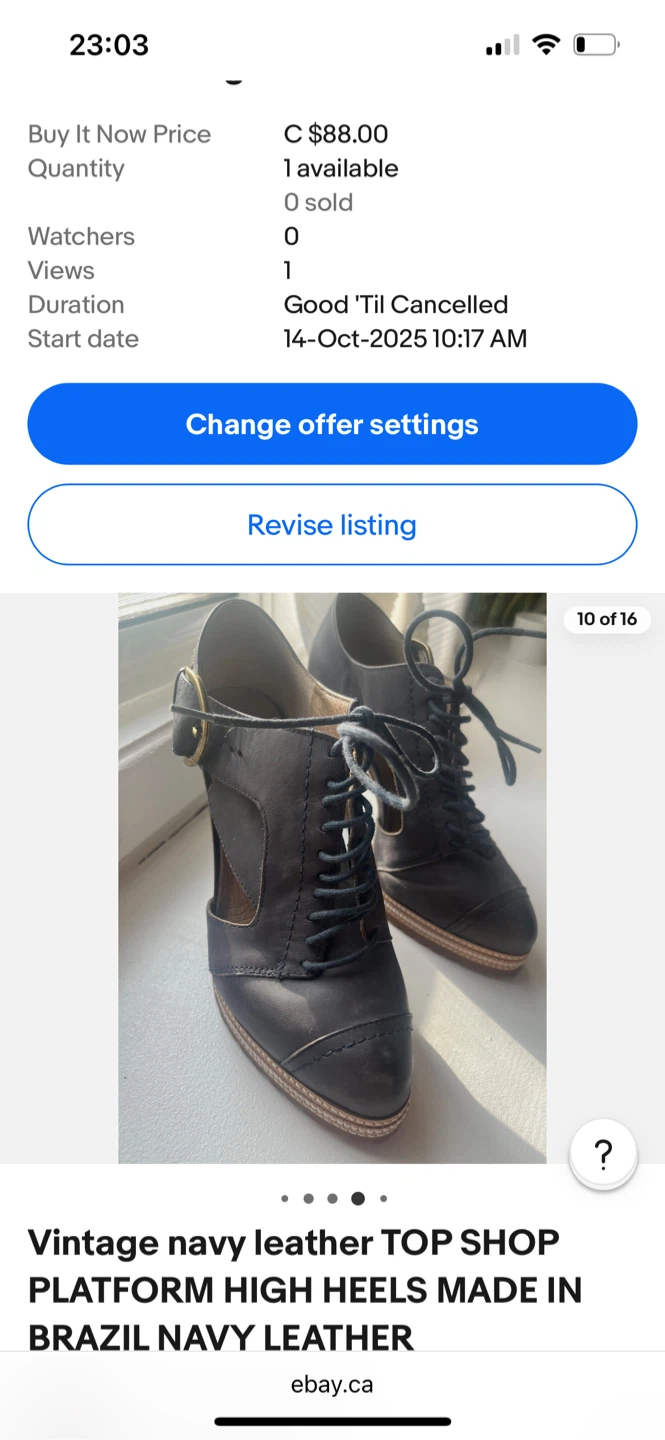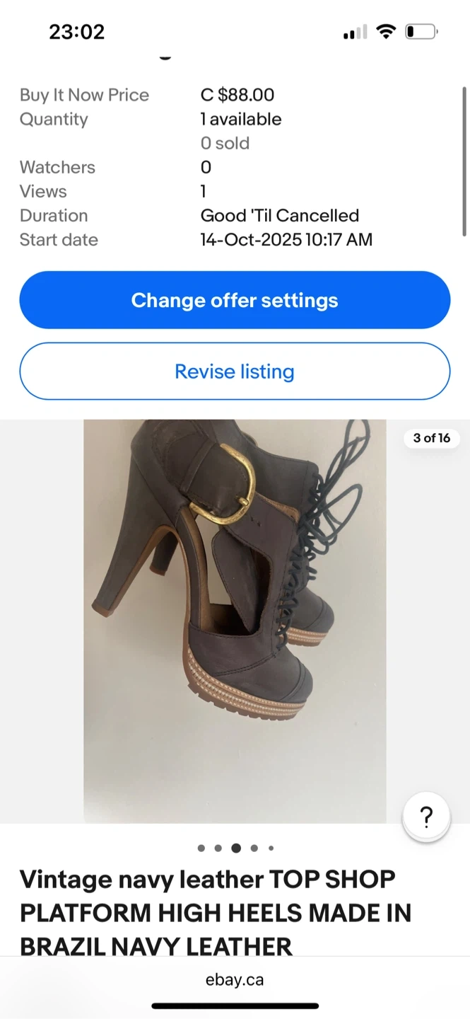 Selling a pair of vintage navy leather platform high heels from Topshop. These heels are made in Brazil and have a unique, stylish look. They are in good condition and ready for a new home!