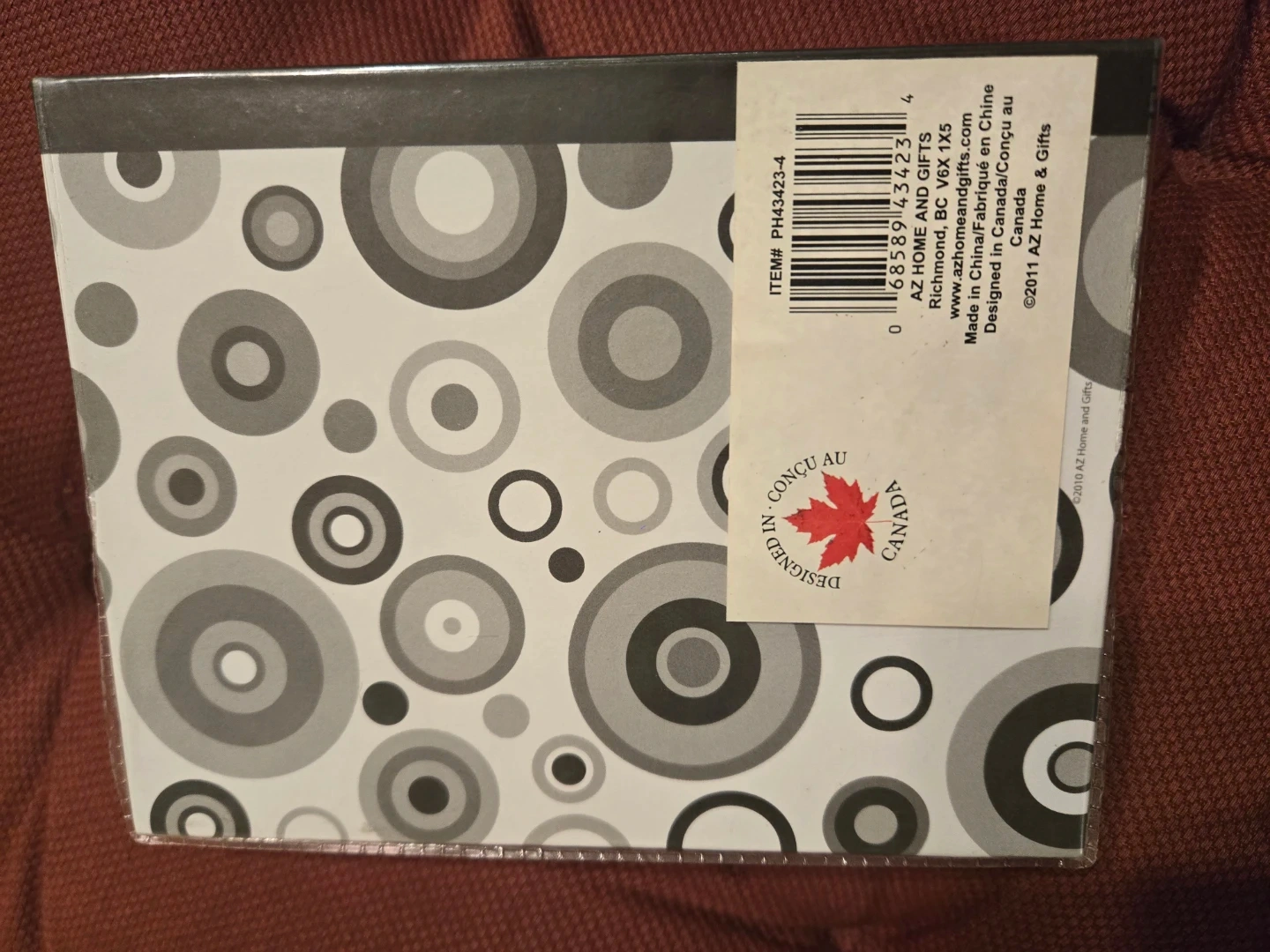 Selling a photo album from AZ Home & Gifts. Holds 100 photographs 4 × 6 inches. Designed in Canada and features a stylish circle pattern. Great for storing your cherished memories