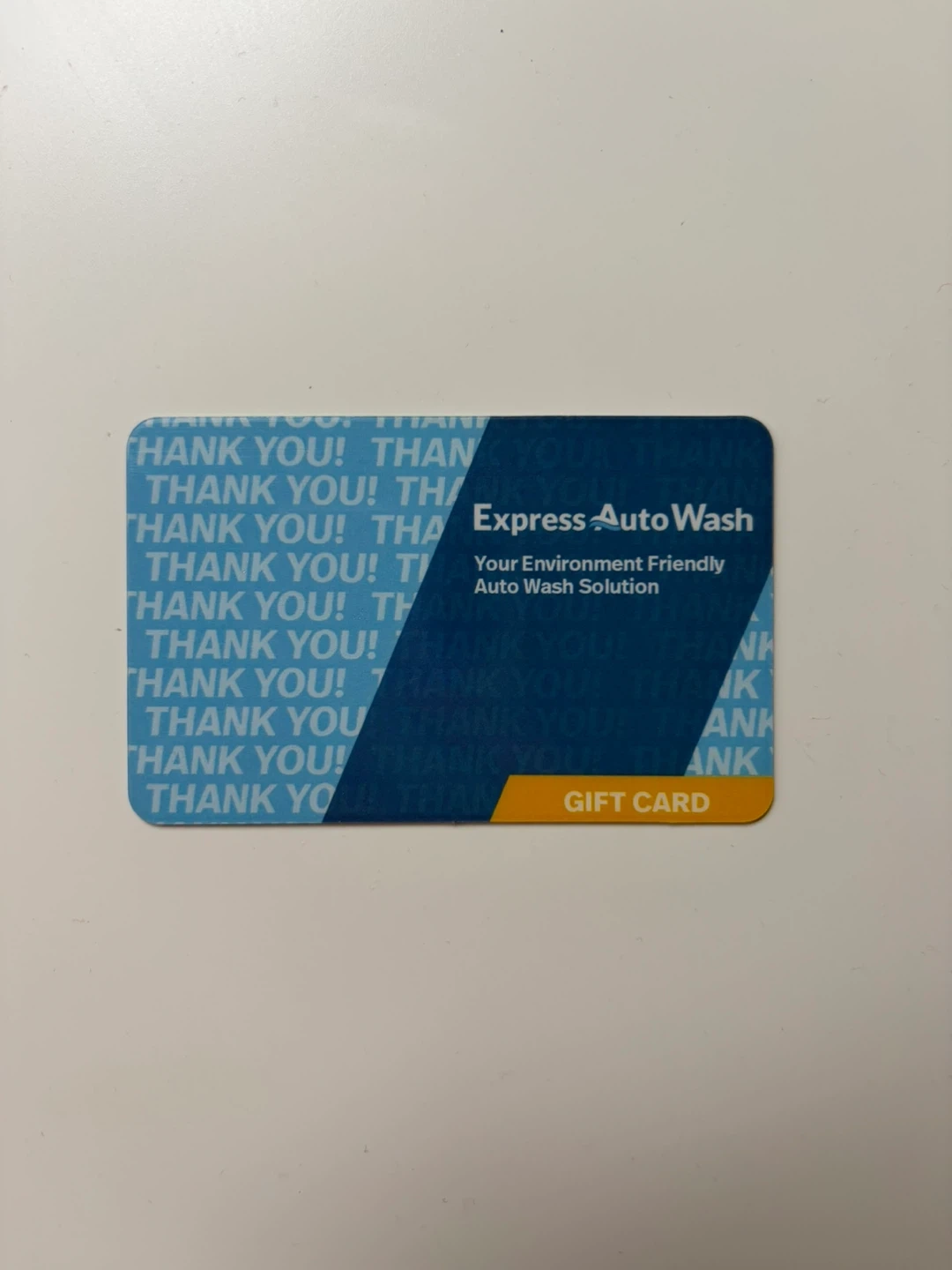 $100 gift card for Express Auto Wash (environment-friendly auto wash).