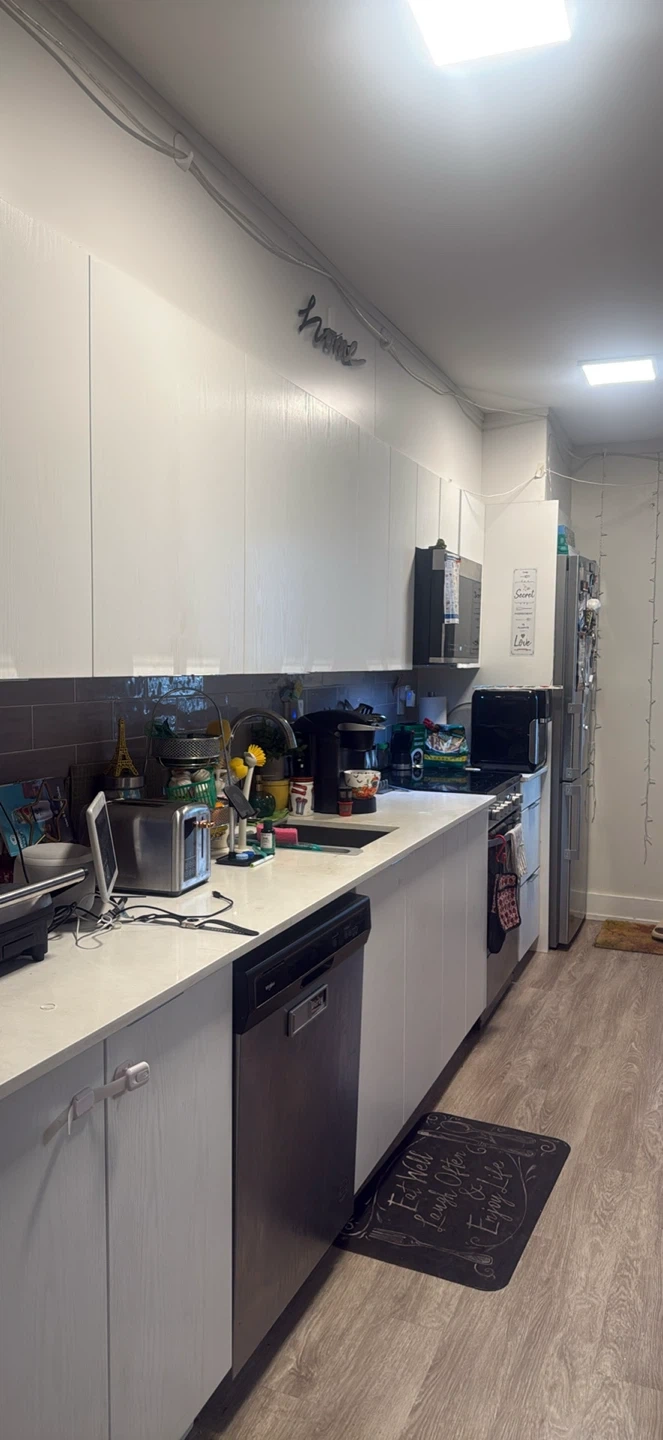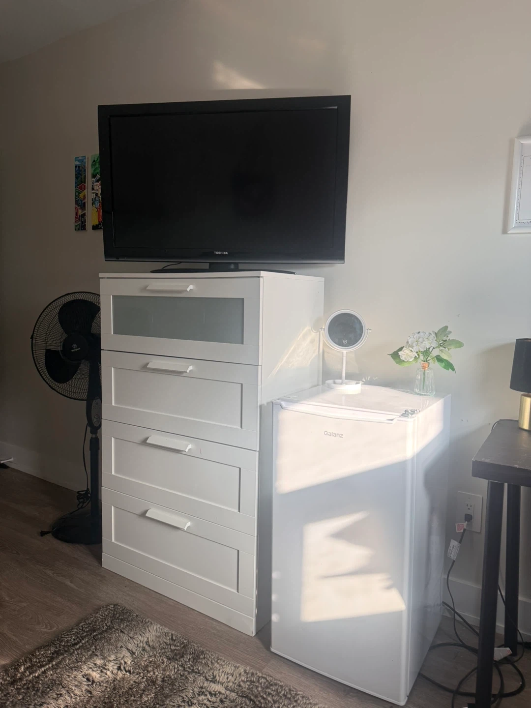 🛏️Furnished with single bed with, 43 "inch TV with fire tv installed , built-in closet, extra dresser, lamp and minibar. Access to kitchen.