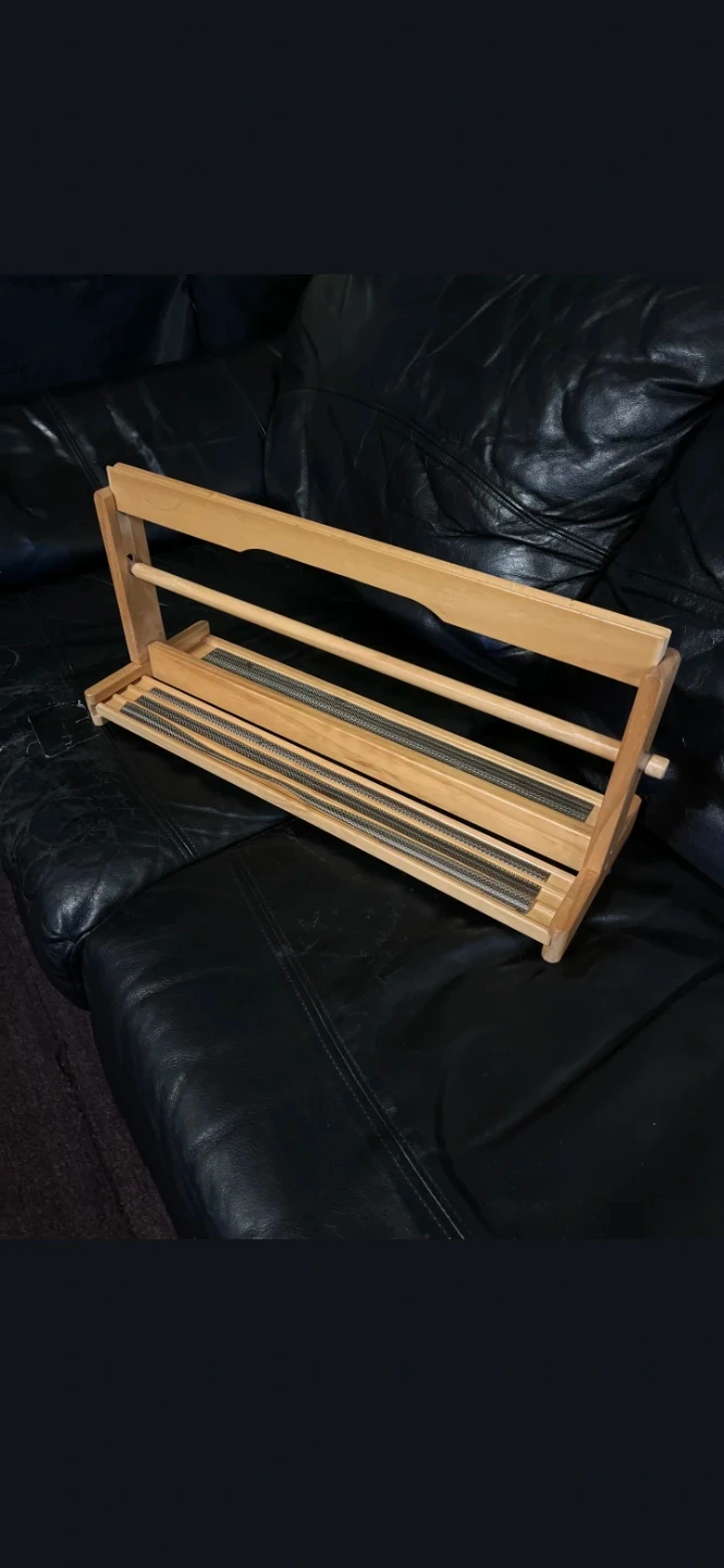Here's a convenient wooden stand for your paper towel roll. It's also ideal for supporting your cookbook or tablet while cooking! Well-maintained and ready to help keep your recipes organized in the kitchen.